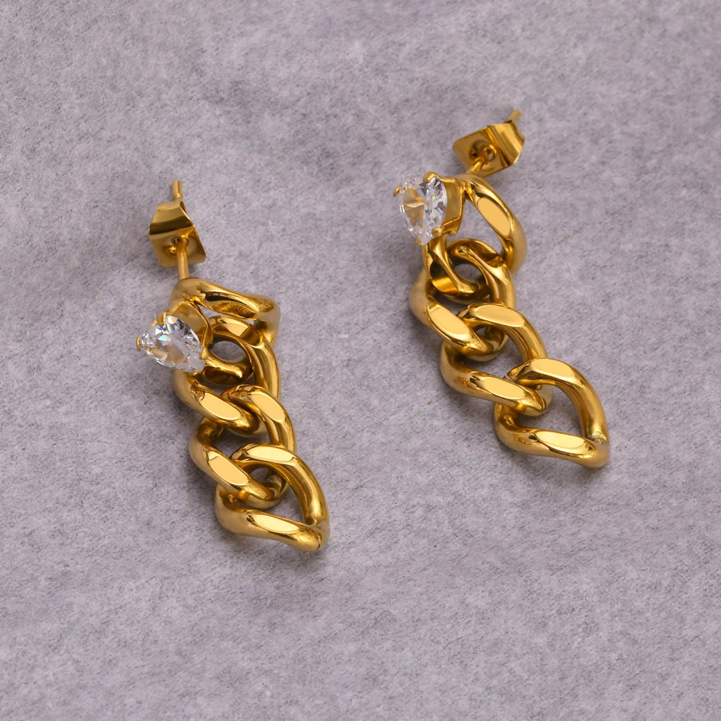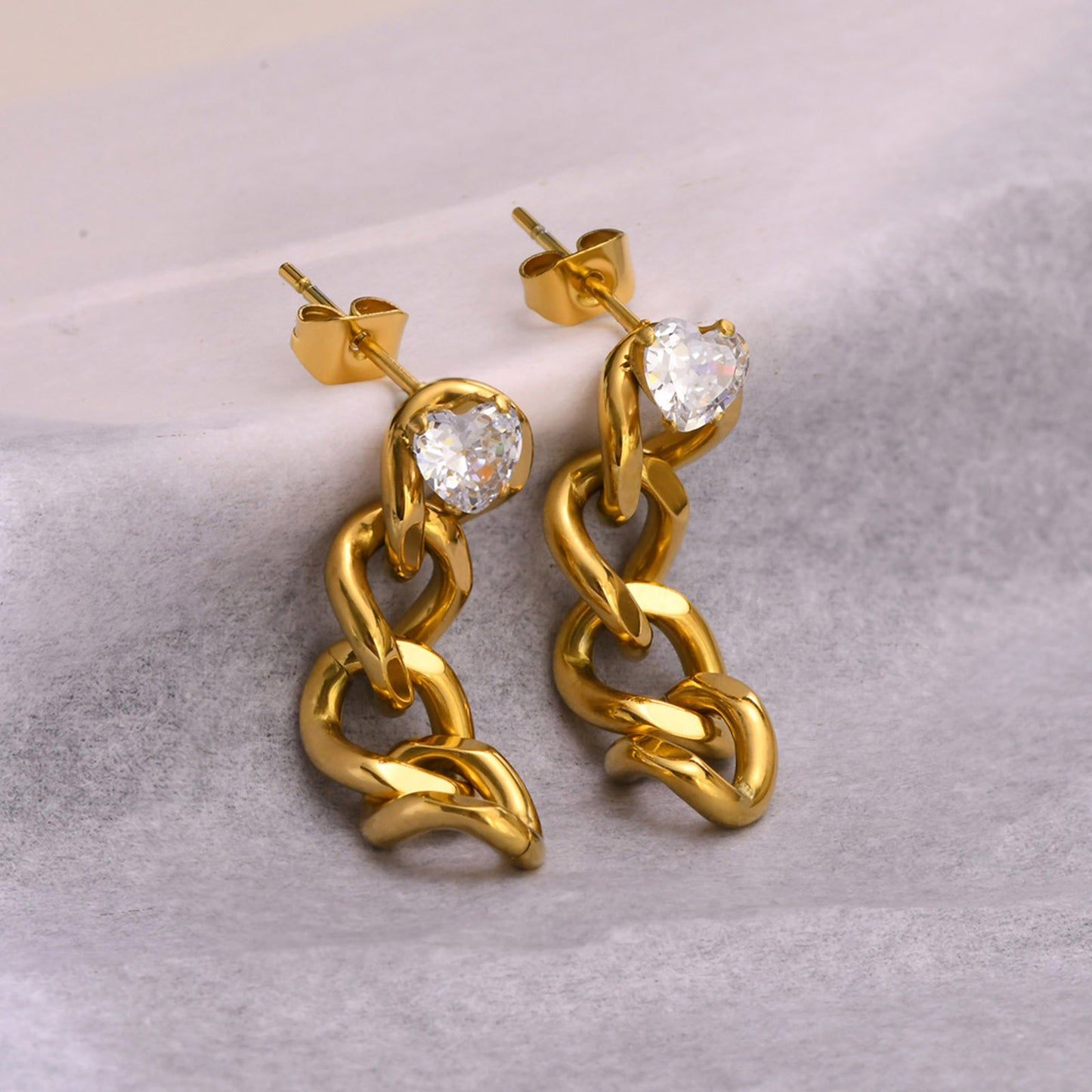 Our Jewelry Design Stainless Steel Inlaid Zircon Chain Earrings Heart Zircon Earrings Earrings offer not just aesthetic appeal but also remarkable quality. Whether you're dressing up for a night out or looking for an elegant accessory for your daily outfit, these earrings are sure to turn heads. Don't miss out on adding this exquisite piece to your jewelry box!