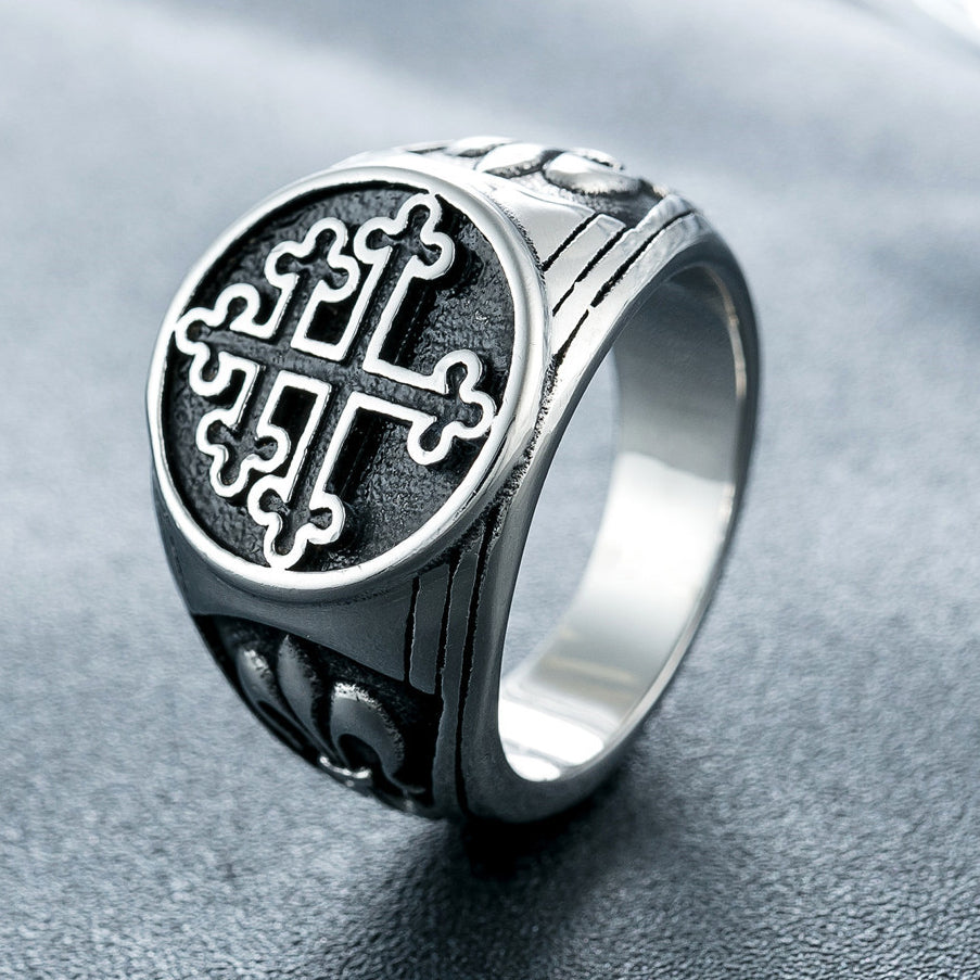 Lorraine Cross Round Titanium Steel Ring for Men