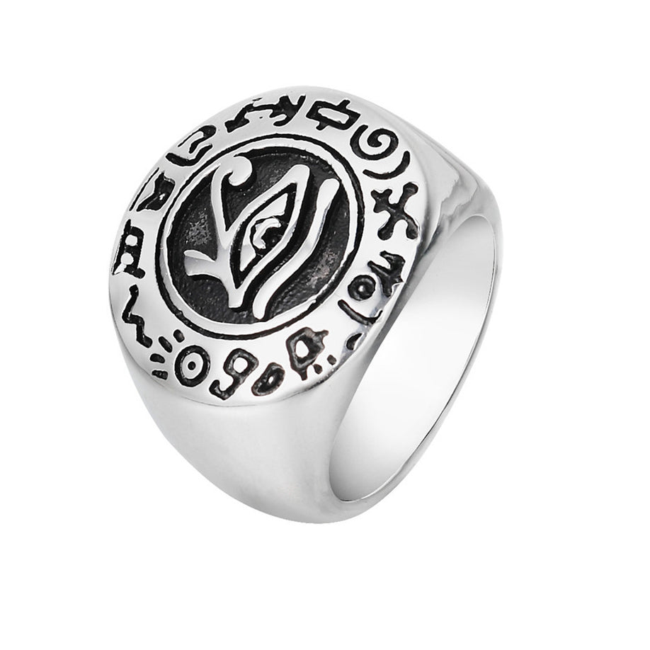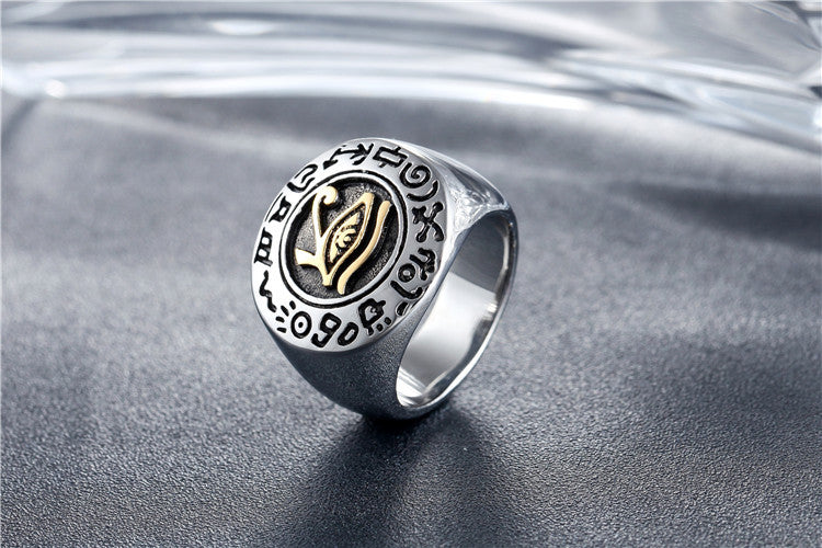 Embrace the aura of the Eye of Horus, a symbol of protection, royal power, and good health. This personalized jewelry piece is designed to make a statement and reflect the wearer's individuality. Elevate your style with this mesmerizing Eye of Horus Retro Titanium Ring, perfect for men who aren't afraid to stand out.