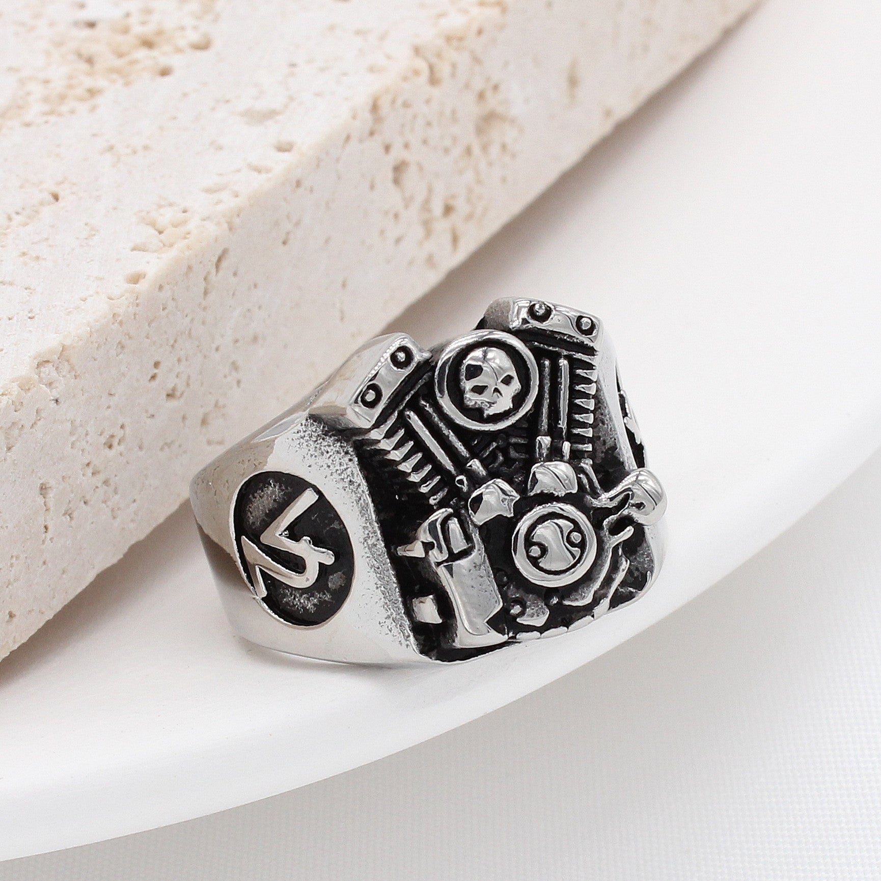 Elevate your style with this unique piece that combines durability with a vintage-inspired motif. Embrace the spirit of the open road and make a bold statement with the Retro Motorcycle Engine Men's Titanium Ring.