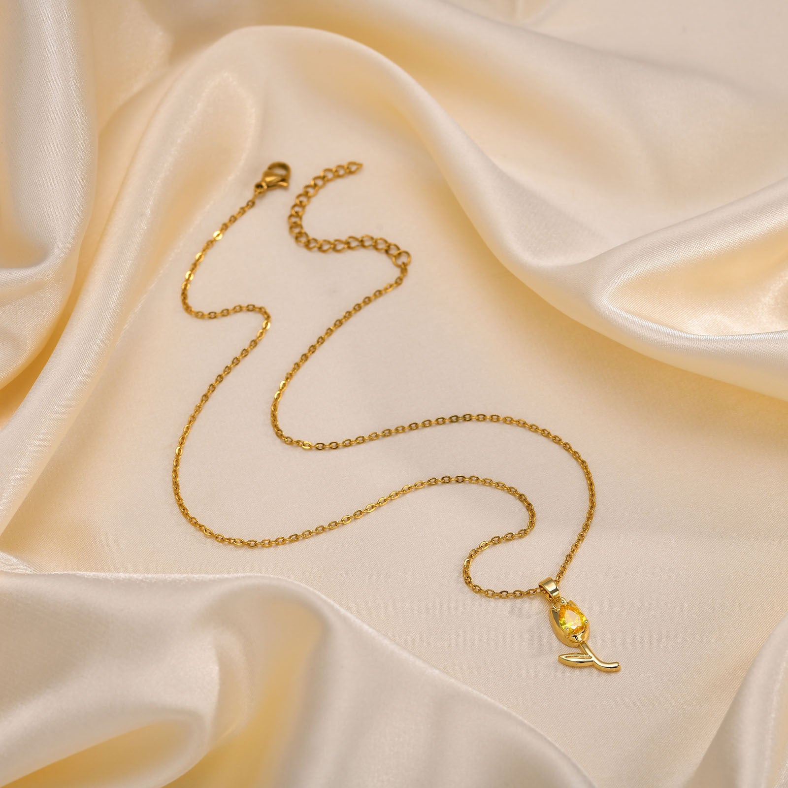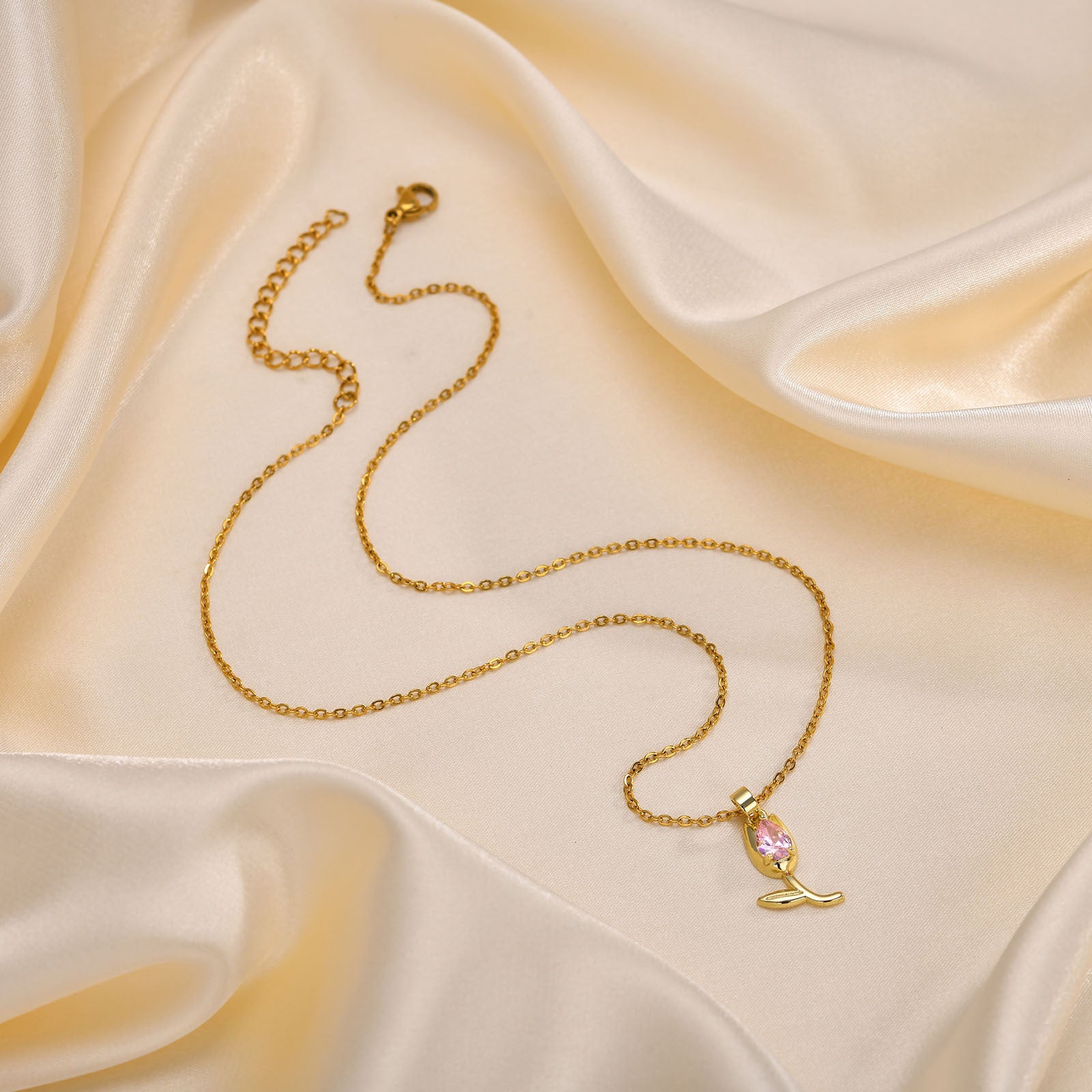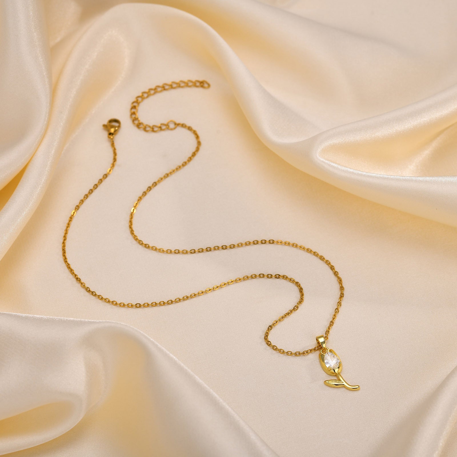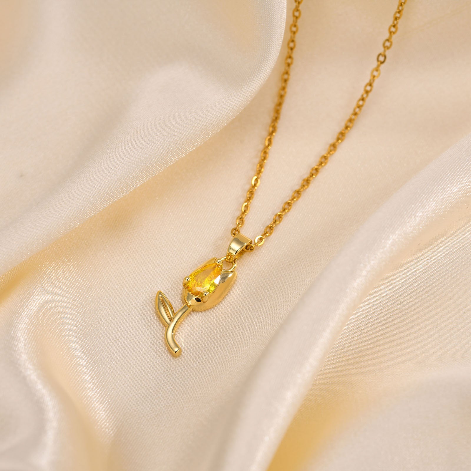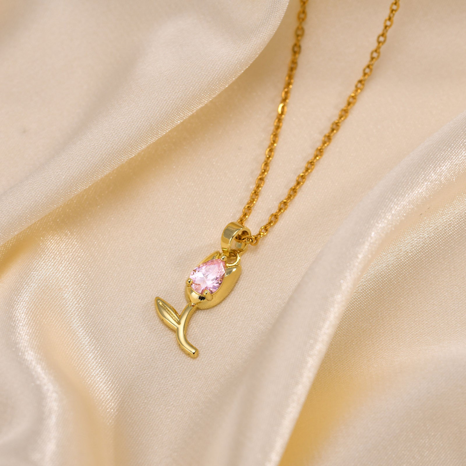 The intricate design of the tulip pendant is not only a symbol of love and beauty but also a statement piece that enhances any outfit. Whether you are dressing up for a special occasion or adding a touch of glamour to your everyday wear, this necklace is the perfect accessory. Its vibrant red zircon stone catches the light beautifully, making it an eye-catching addition to your jewelry collection.