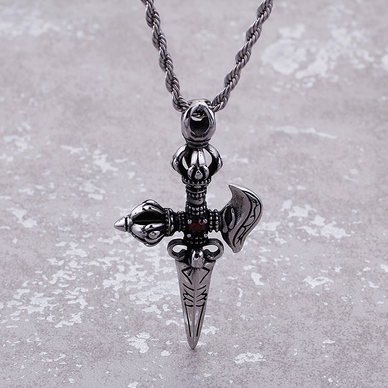 Introducing the Retro Fashion Jewelry Men's Pendant, a creative titanium steel piece featuring a striking ruby cross vajra pestle design. Elevate your look with this unique pendant that embodies style and sophistication.