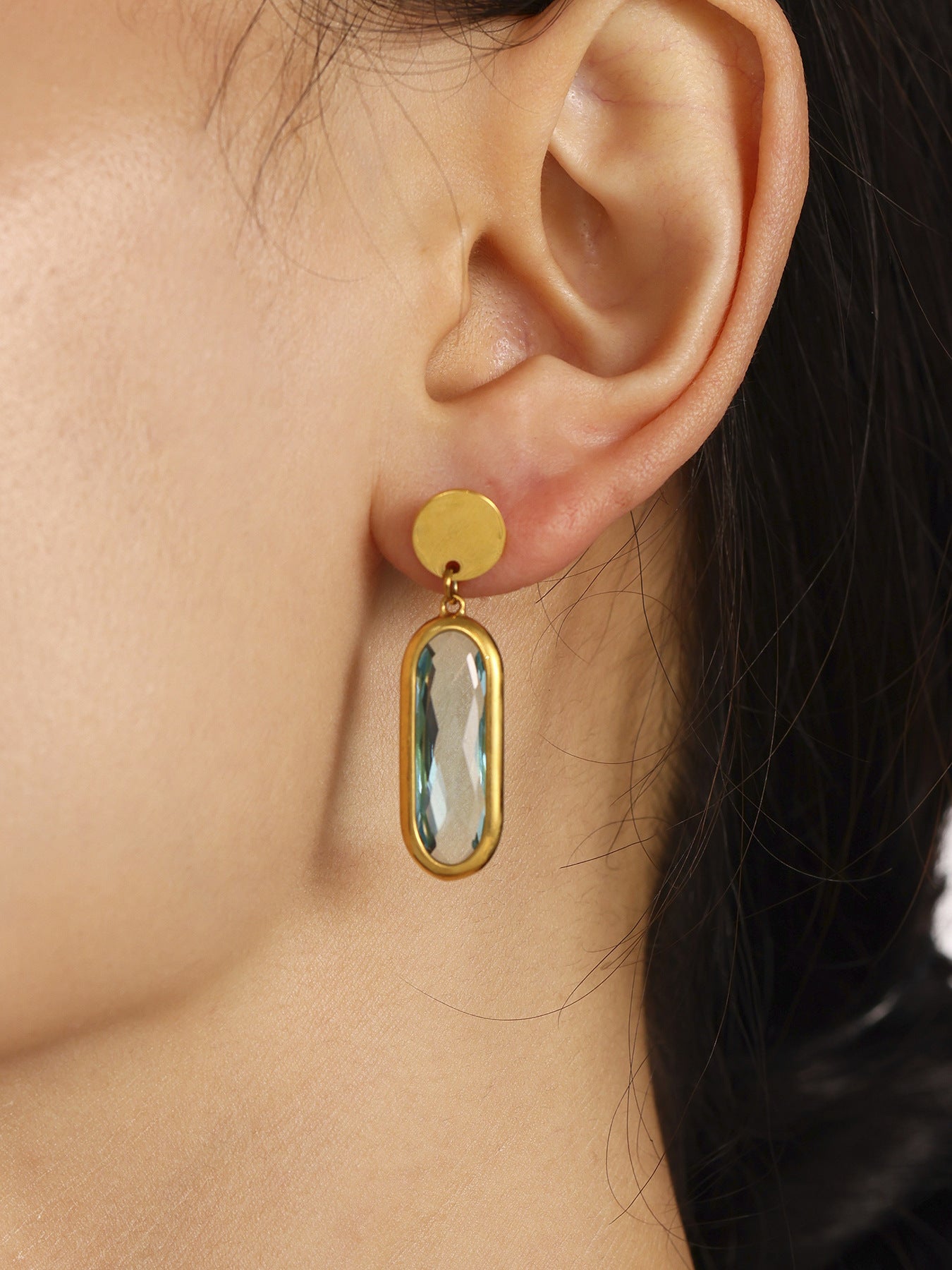 Planderful for Women Round Glass Earrings 18K Gold Plated