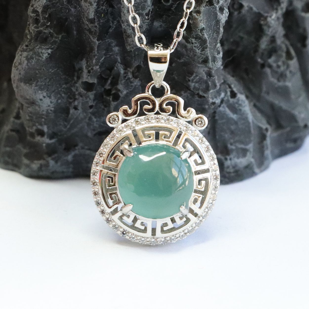 Whether you're treating yourself or searching for the perfect gift, this necklace is sure to impress with its quality craftsmanship and striking design. Embrace the beauty of the ice blue and green hues of the natural jade, creating a mesmerizing contrast against the silver backdrop.