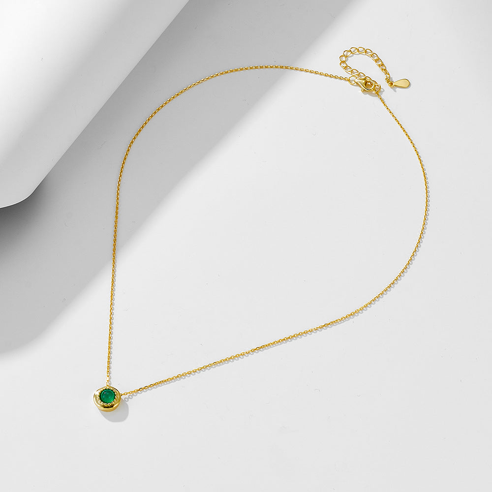 This elegant round shape natural green agate pendant necklace is encased in a sterling silver setting, adding a luxurious touch to your daily style. Enhance your look with the eye-catching shimmer of the natural gemstone, perfect for a sophisticated night out.