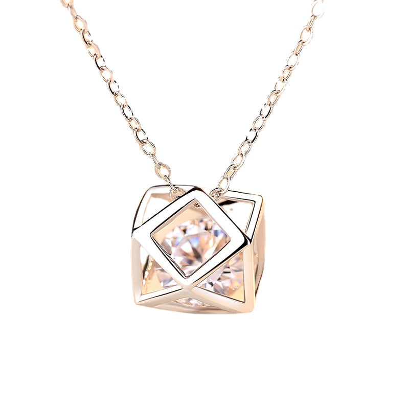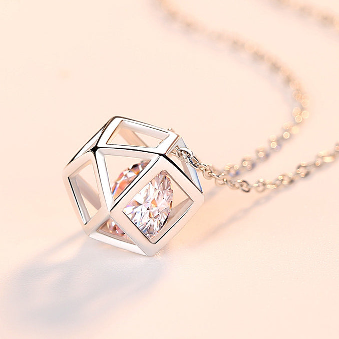 (Pendant Only) Cube Ball with Zircon Silver Pendant for Women