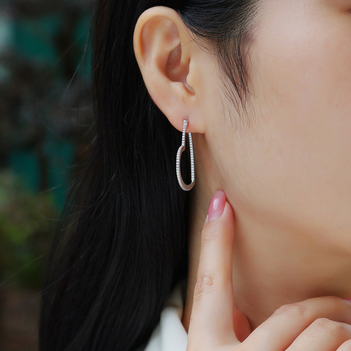 Discover the enchanting allure of our S925 silver plated 18K Platinum hollow heart shape hoop earrings with 0.72 carat small round Moissanite. These stunning earrings are designed for the modern woman who appreciates both elegance and sophistication.