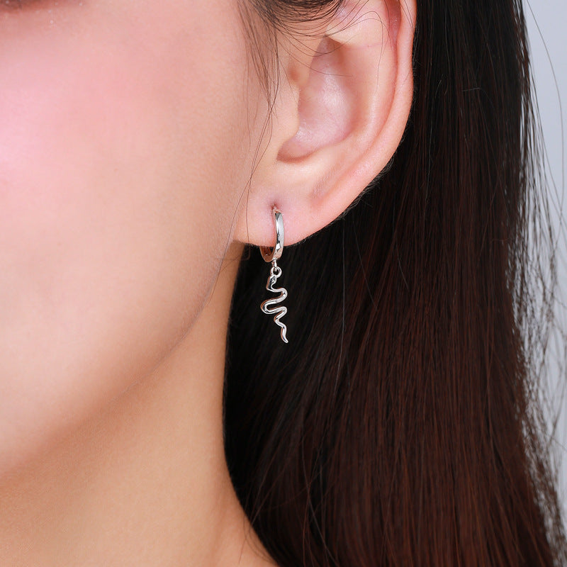 Snake-Shaped Sterling Silver Earrings for Women - Elegant and Versatile