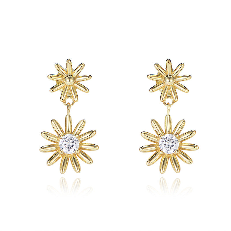 Daisy Flower with Zircon Silver Drop Earrings for Women