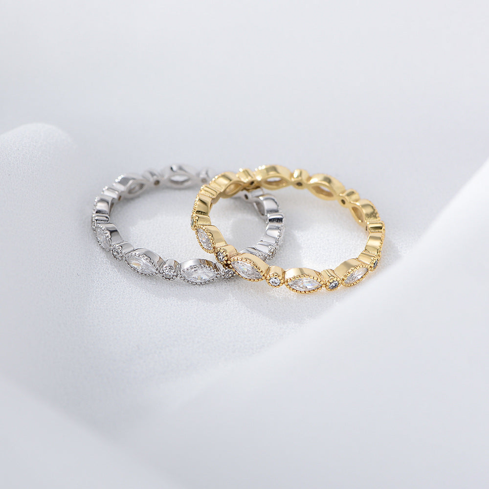 Marquise and Round Shape Zircon Beading Sterling Silver Ring for Women