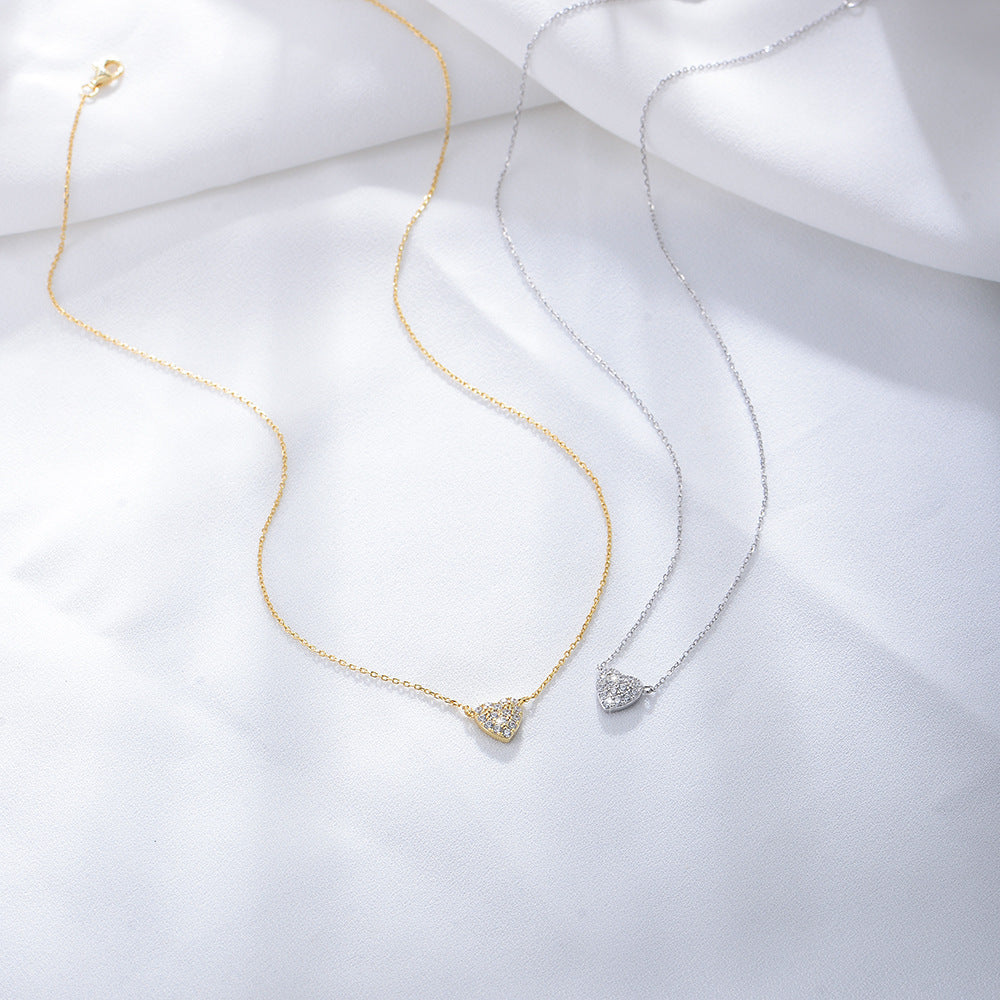 Sweet Love with Full Zircon Sterling Silver Necklace for Women