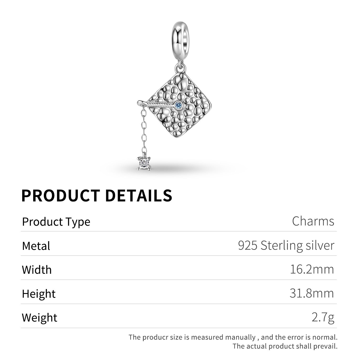 To keep your S925 Sterling Silver Scholar Hat Pendant looking its best, wipe gently with a soft jewelry cloth after wear, store in a dry jewelry box or pouch, and avoid contact with harsh chemicals or moisture. For deeper cleaning, use a mild soap solution with warm water, rinse thoroughly, and dry completely before storing.