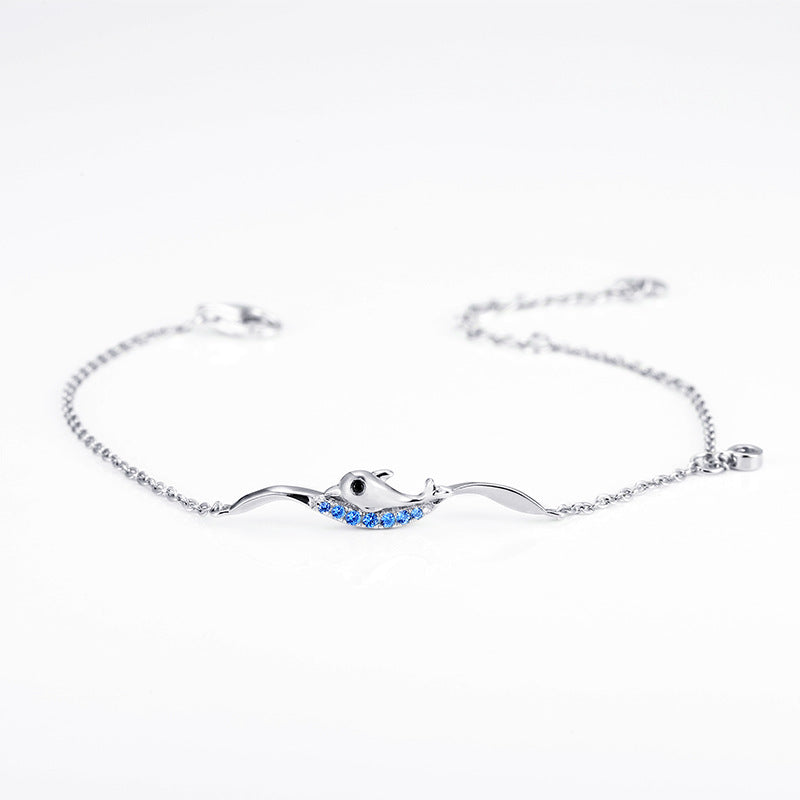 Swimming Dolphin with Blue Zircon Silver Bracelet for Women