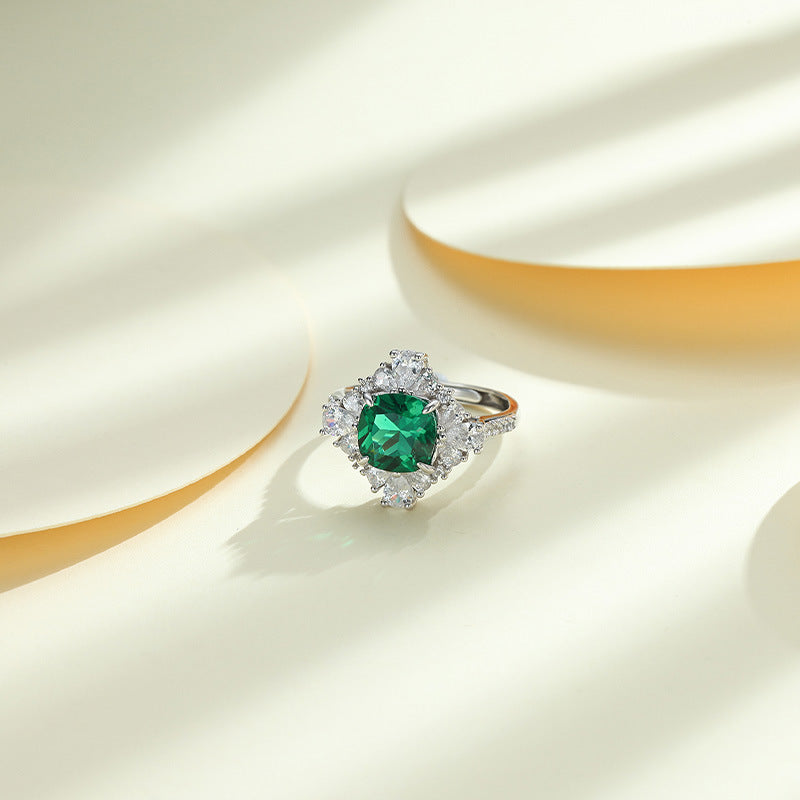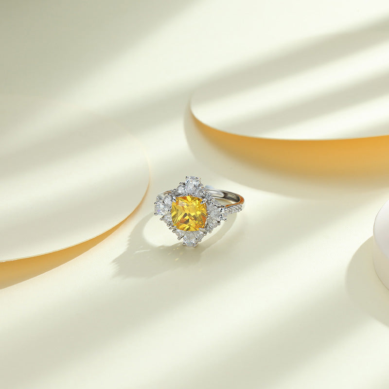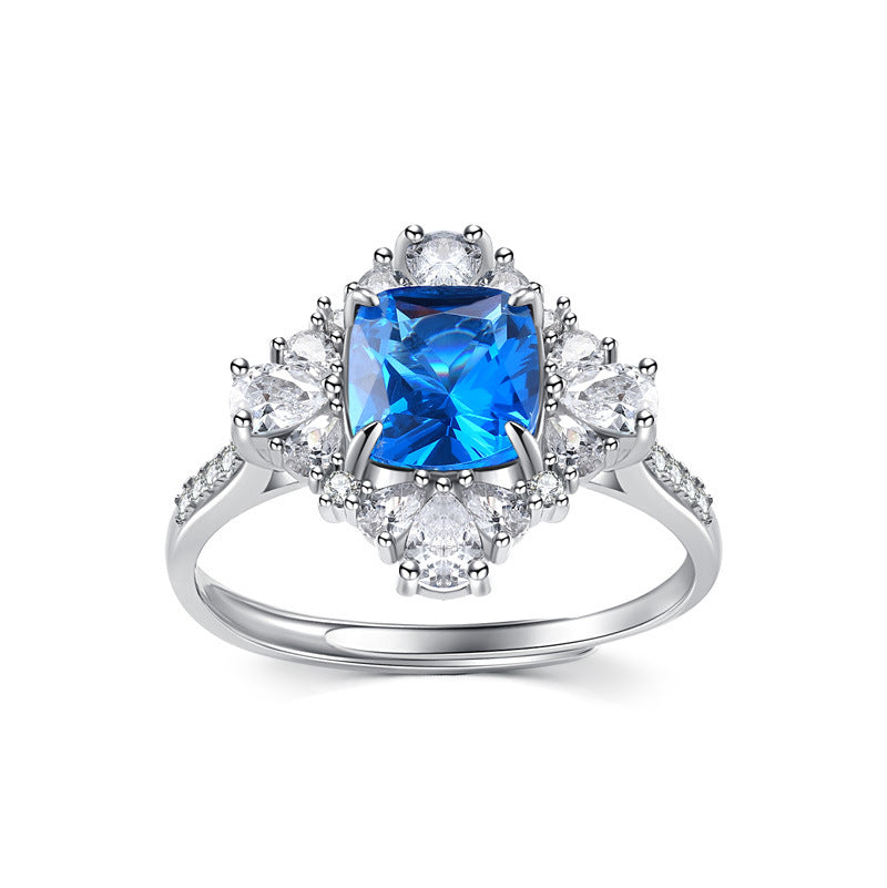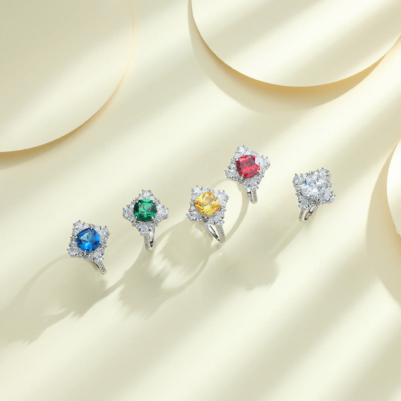 Colourful Cushion Cut Zircon Square Soleste Halo Silver Ring for Women