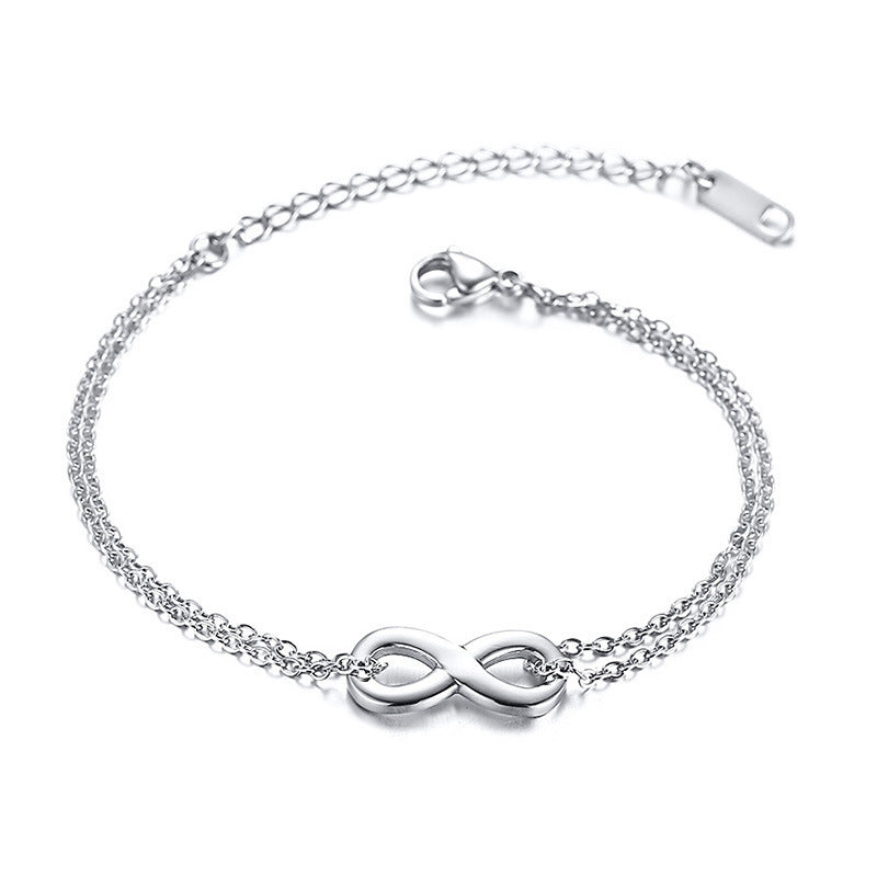 Upgrade your accessory game with this exquisite titanium steel bracelet that combines style and functionality. Order your simple and fashionable women's bracelet, titanium steel double chain 0-character chain infinite today, and enjoy a piece of jewelry that truly reflects your personality!