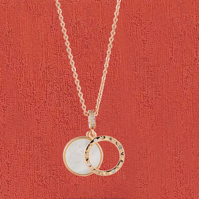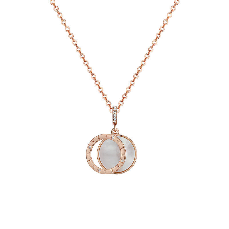 Double Circle with Mother of Pearl and Zircon Silver Necklace for Women