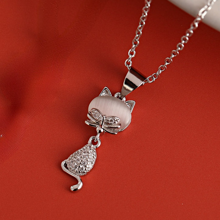 This Zircon Cat Pendant Silver Necklace for Women is effortlessly stylish. Crafted in sterling silver, this necklace features a little Cat pendant with the addition of shimmering Zircon stones to give it a unique and charming look. Perfect for adding panache to your outfit!