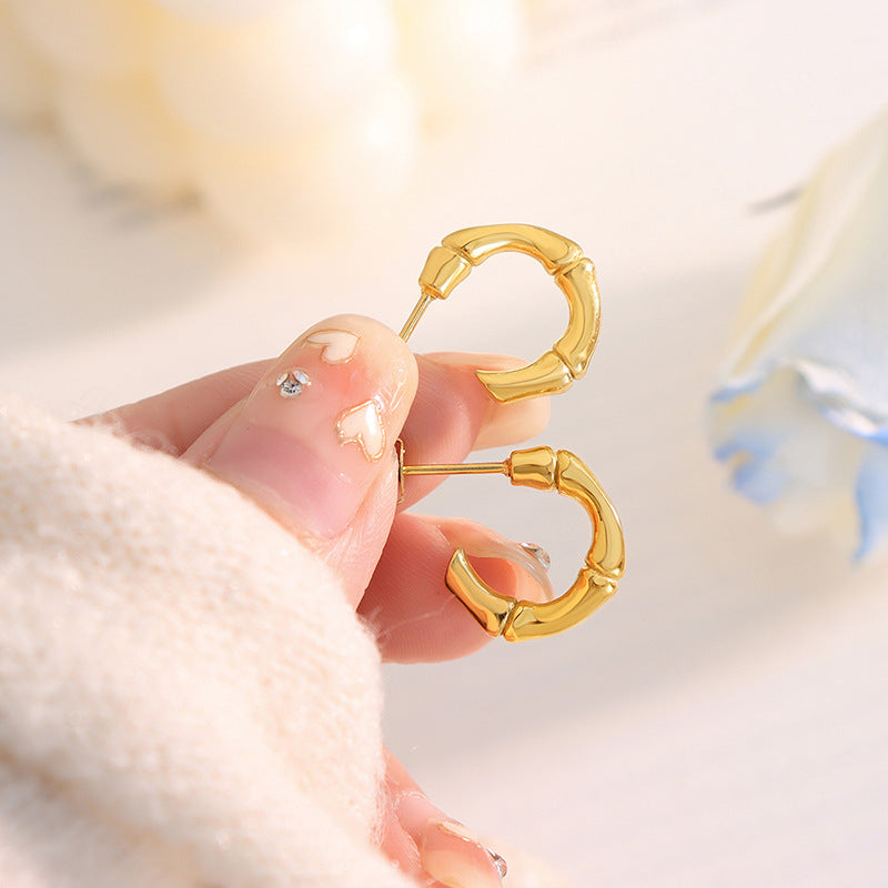 European & American Gold-Plated Stud Earrings with Unique C-shaped Design