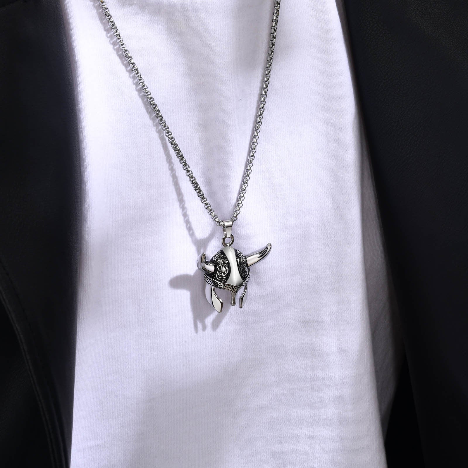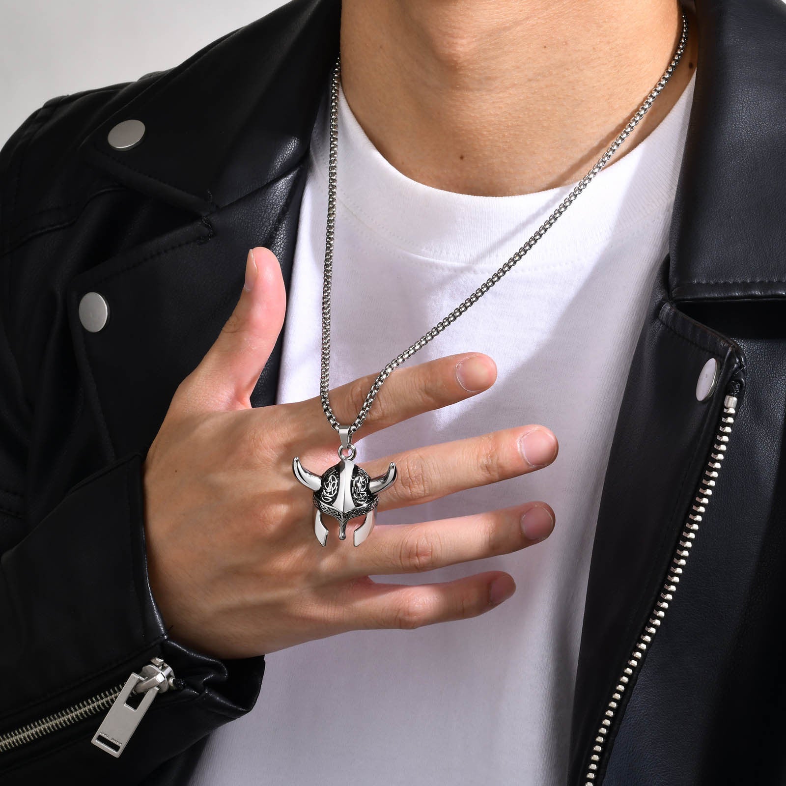 Introducing the Stainless Steel Celtic Knot Viking Mask Pendant Hip Hop Necklace Tide Accessories Men's Versatile Pendant for men, a bold statement piece that seamlessly blends tradition with contemporary style. Made from high-quality titanium steel, this pendant embodies durability and sophistication, making it the perfect accessory for any occasion.