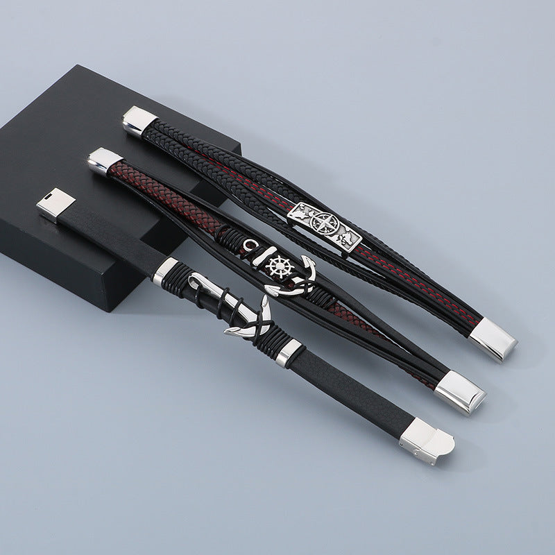 Introducing the Planderful Stainless Steel Magnetic Buckle Leather Bracelet, a woven multi-layer men's bracelet designed for everyday wear with maritime flair. This piece blends a rugged leather-woven strap with a sleek stainless steel magnetic buckle, delivering durable style that transitions from casual to smart-casual with ease.