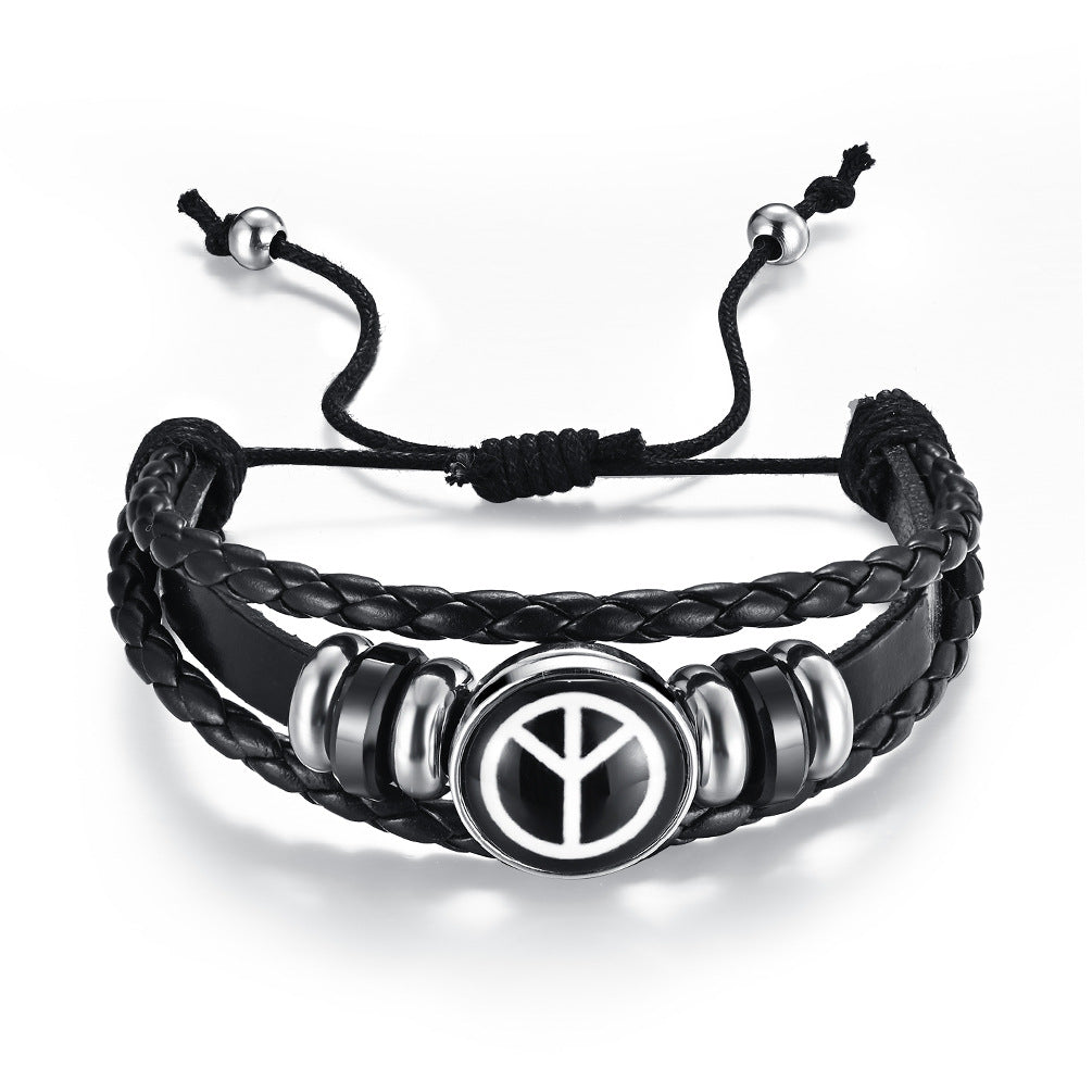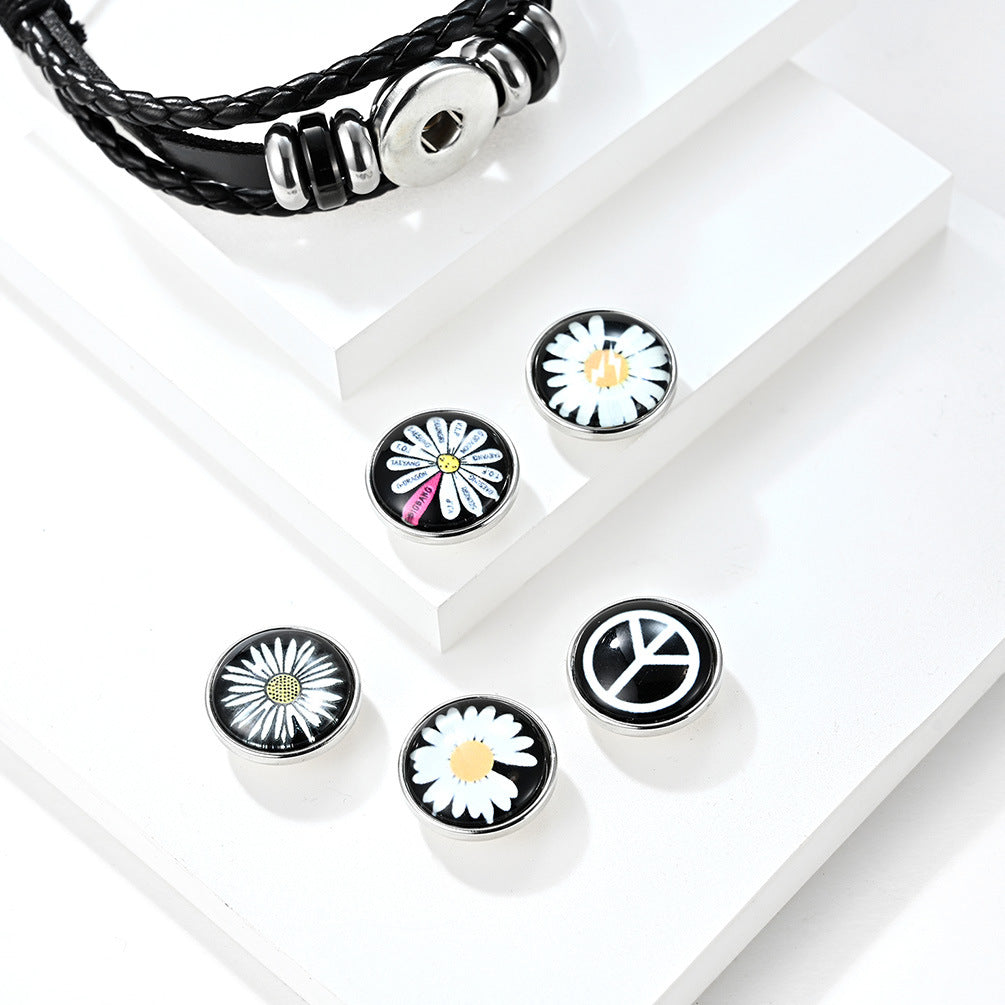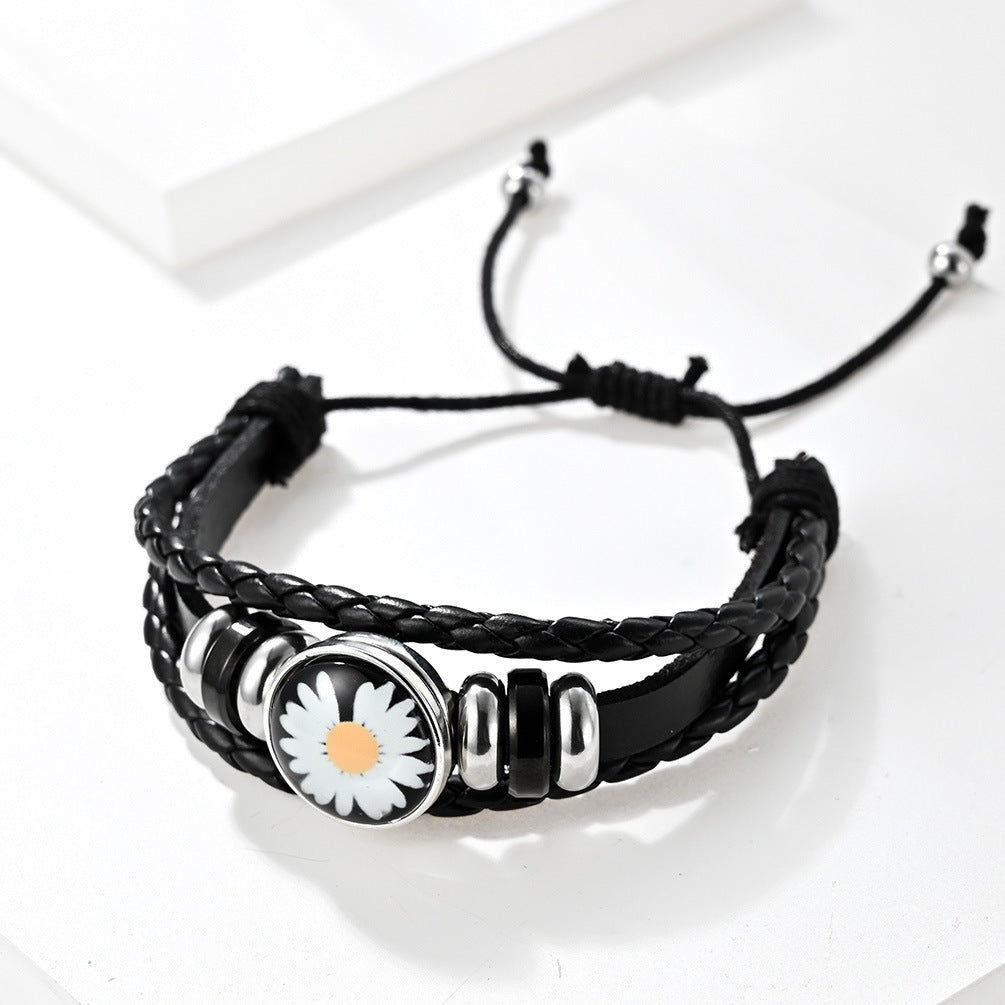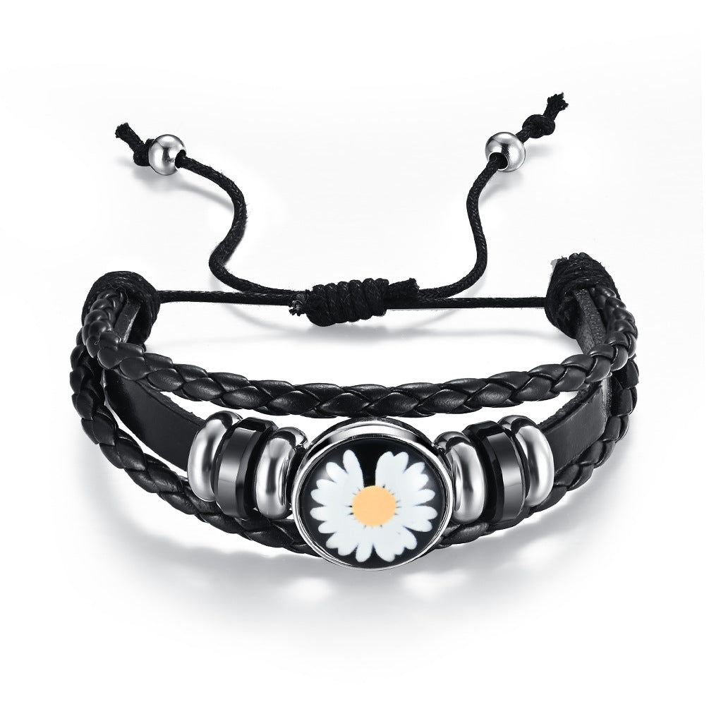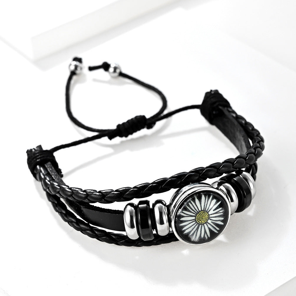 Sunflower Daisy Stainless Steel Leather Rope Bracelet for Men