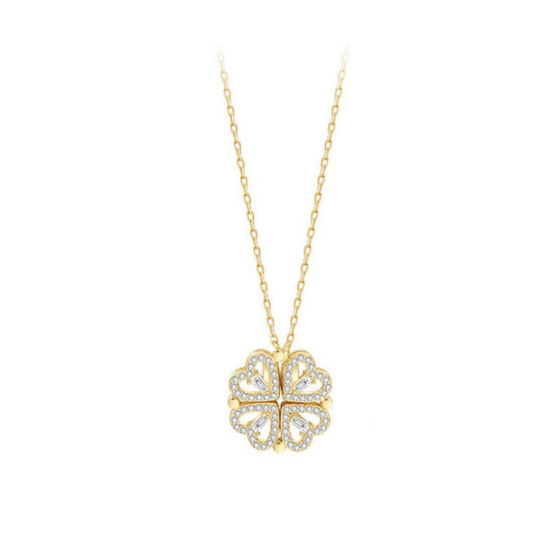 Two-wearing Design Zircon Lucky Clover Silver Necklace for Women