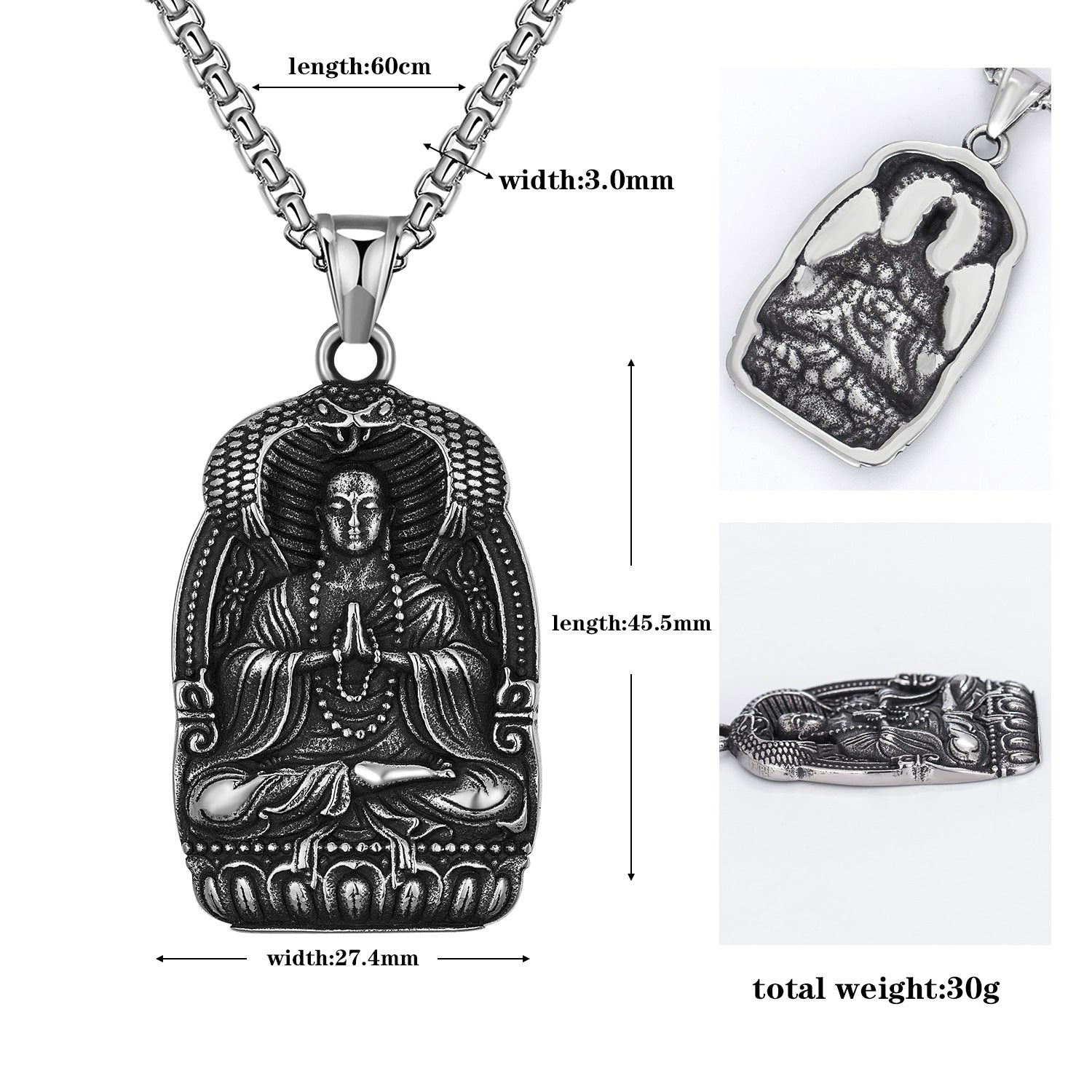 • Pendant details: Sakyamuni motif pendant adds a timeless spiritual symbol to a versatile, masculine necklace.