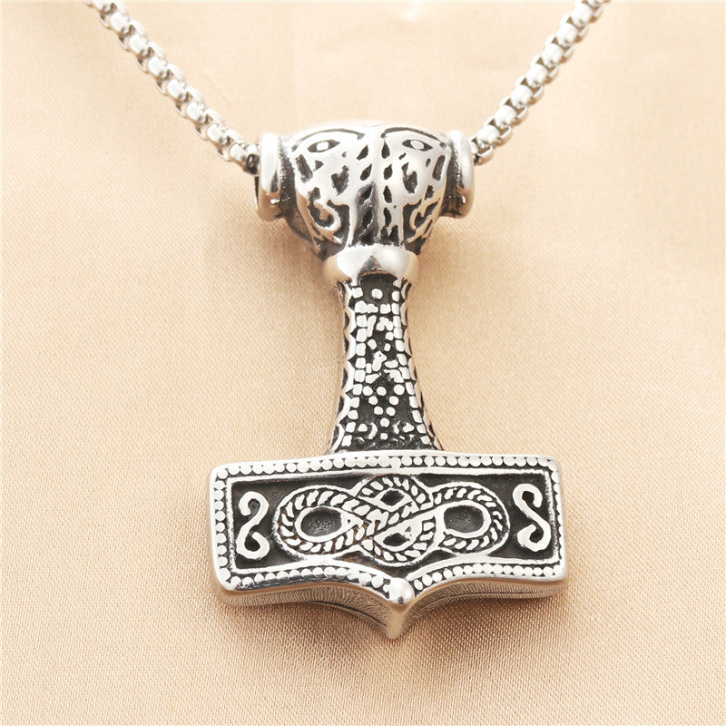 Titanium Steel Viking Hammer Pendant Necklace - Personalized Retro Punk Design for Men