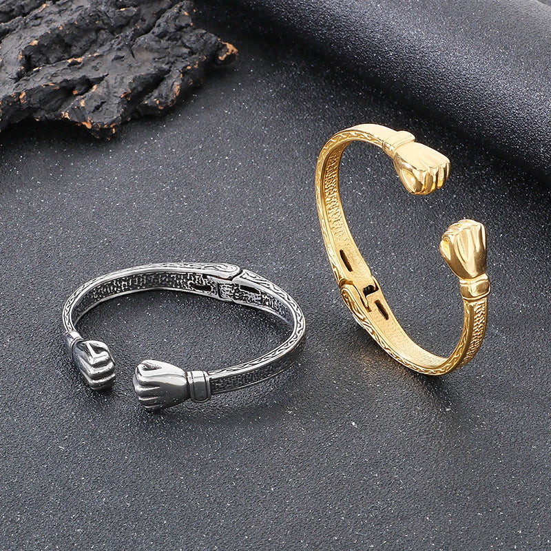 Whether you're dressing up or dialing down your look, this opening bracelet adds a statement of power and refinement. It pairs perfectly with suit-and-tather looks, casual denim, or urban streetwear, making it a versatile addition for men who appreciate bold metal jewelry with a retro edge.