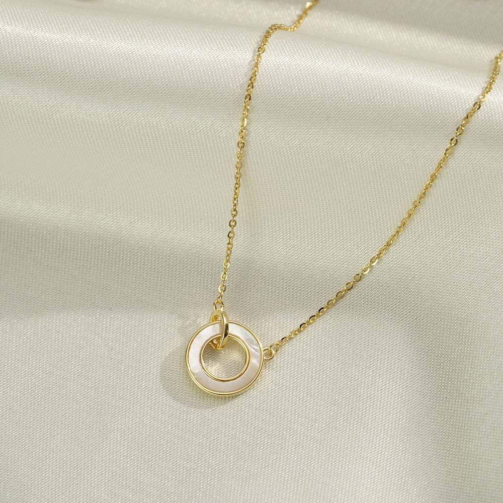 (Two Colours) White Mother of Pearl Circle Ring Pendants Collarbone Necklace for Women