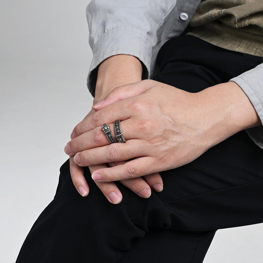 Unleash a bold, masculine aesthetic with this Viking-inspired stainless steel ring. Featuring a double-headed snake motif and Viking rune details, it’s designed for men who value niche personality jewelry with a retro literary vibe.