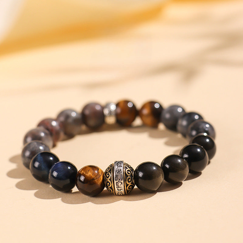 Planderful Fortune's Favor Obsidian Bracelet – Unique Couple Design with Blue Tiger Eye