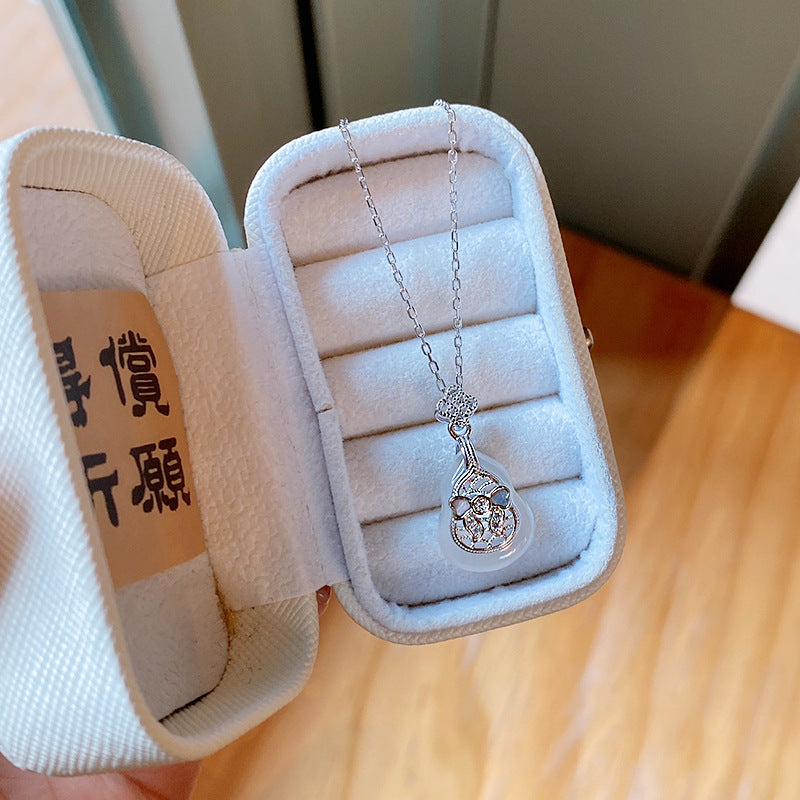Introducing the S925 Sterling Silver Gourd Chalcedony Necklace, a stunning blend of tradition and modern elegance designed for the contemporary woman. This exquisite piece from the Planderful Everyday Genie Collection embodies the essence of the new Chinese style, making it a perfect accessory for any occasion.