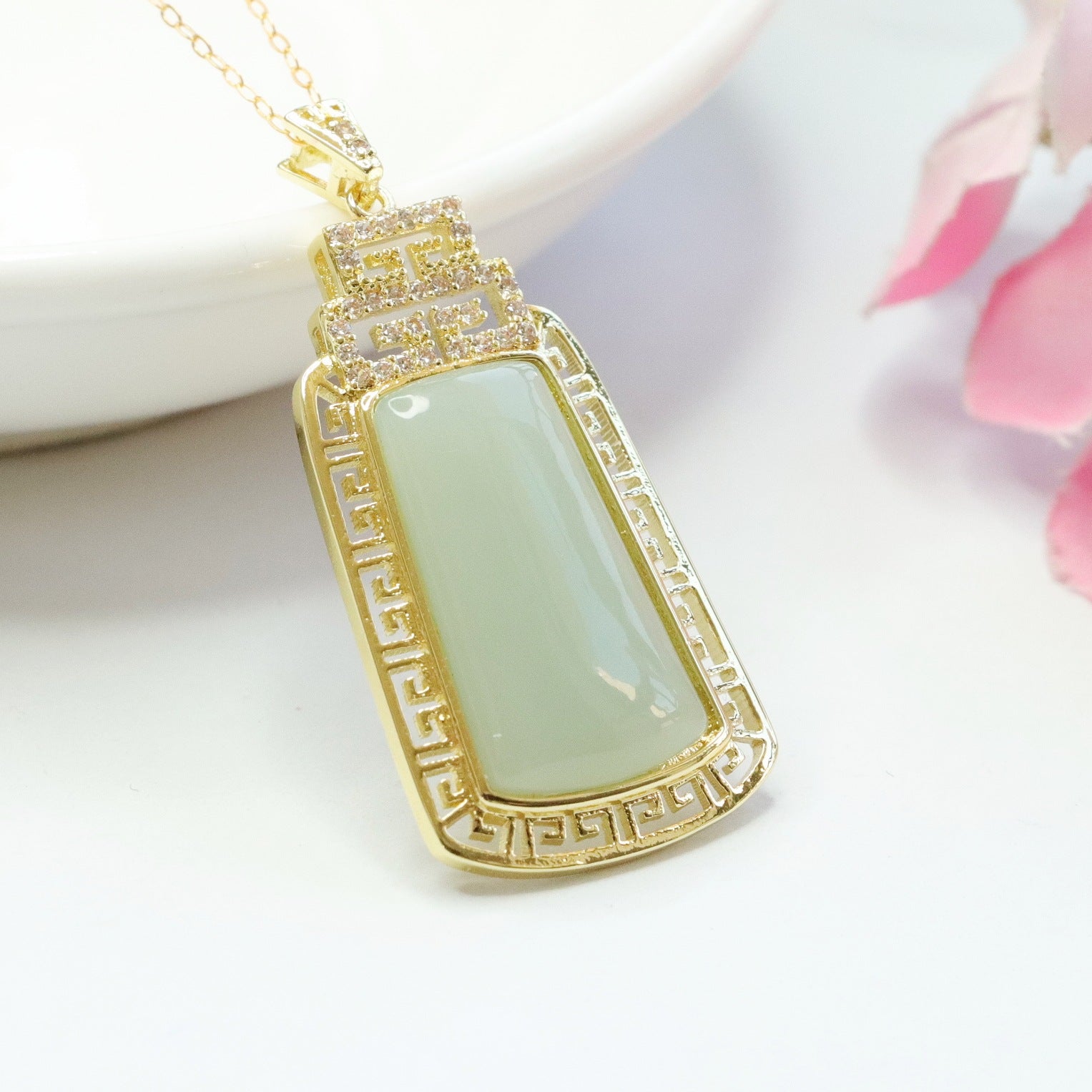 Embrace elegance and grace with our exquisite Natural Hetian Jade Pendant Necklace. Crafted by the renowned Planderful brand, this necklace is a true symbol of luxury and beauty. Made with sterling silver and featuring a stunning jade gem, this necklace exudes sophistication and style. The Fortune's Favor collection brings you not just a piece of jewelry, but a touch of luck and prosperity.