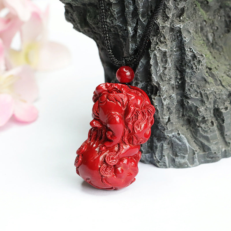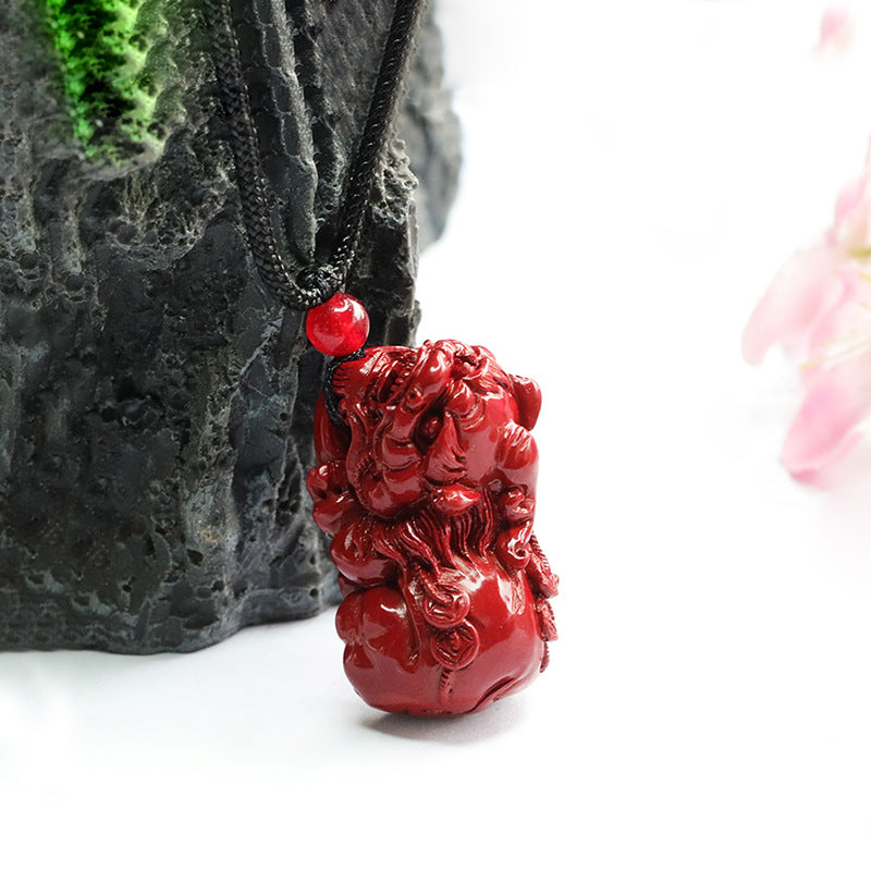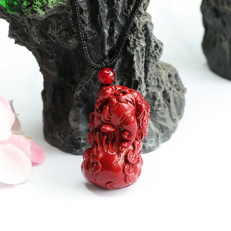 Ethnic Style Vermilion Sand Pendant with Purple Gold Sand and Copper Coin Pixiu