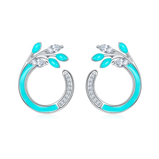 Round Zircon Plum Blossom Silver Studs Earrings for Women
