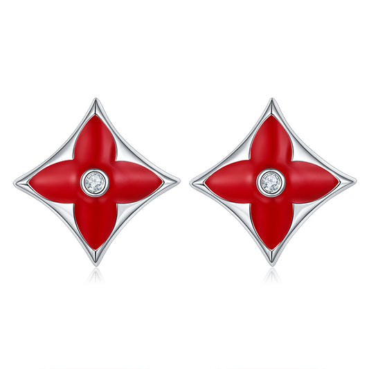 Four-leaf Clover with Zricon Silver Studs Earrings for Women
