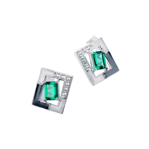 Black Rectangle Zircon Silver Hoop Earrings for Women