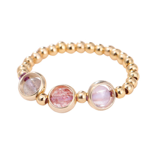 Strawberry Crystal and Pearl Sterling Silver Ring with Pixiu Design
