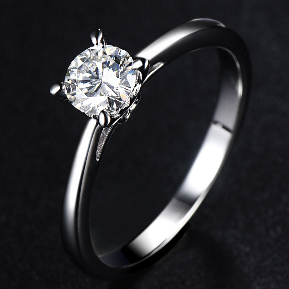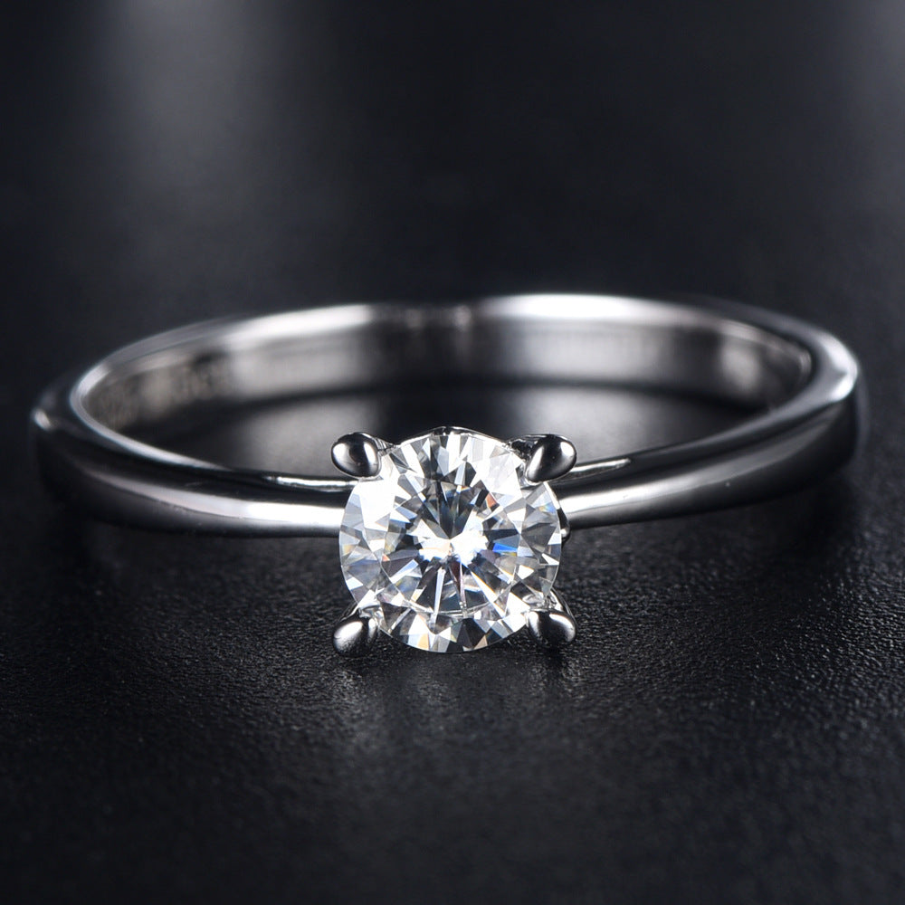 Four Prongs Solitaire Round Cut Moissanite Engagement Ring