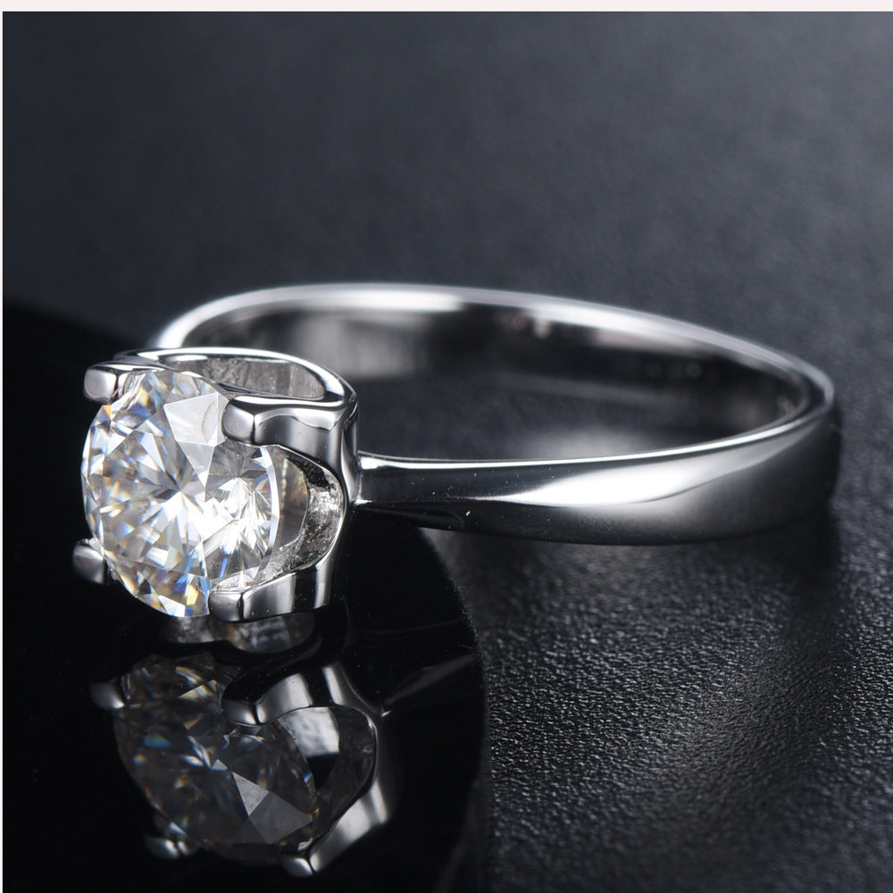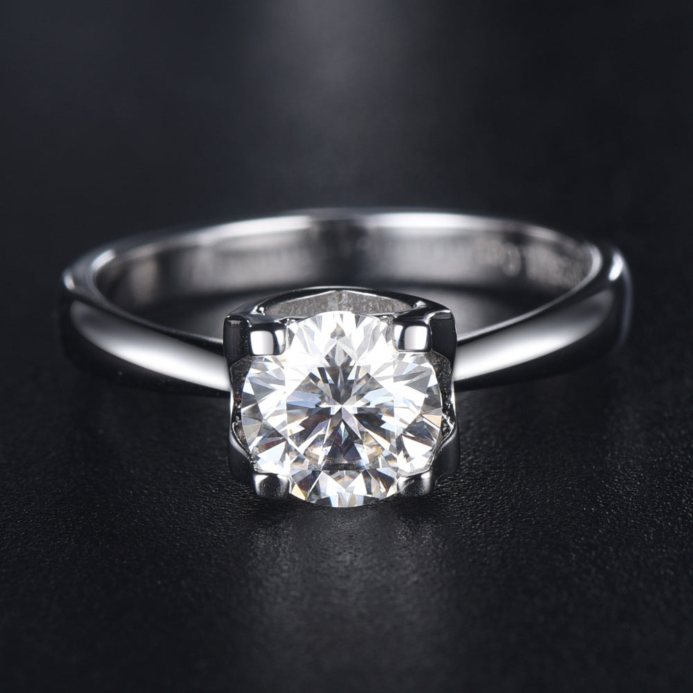 This ring uses a 1.0-carat Moissanite stone, with high colour and purity, allowing to shine in any occasion. At the same time, the hollow heart-shape four-prong design is the characteristics of this ring, making it more fashion and elegance. It is not only exquisite in appearance but also of high quality, making you or your loved one more comfortable when wearing it.