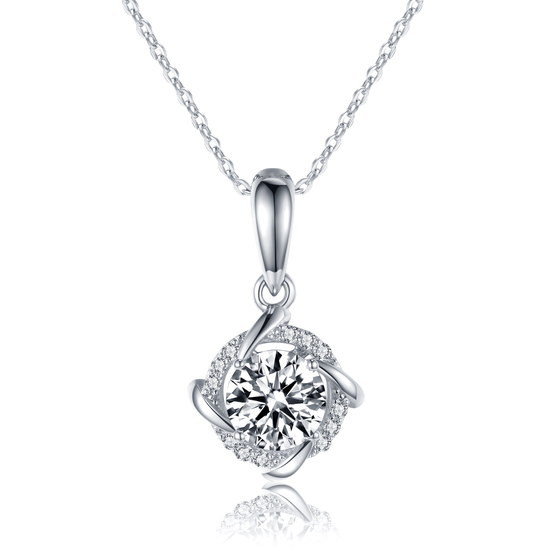 Planderful Moissanite Pendant 1.0ct Sparkling D VVS 3EX Sterling Silver Plated Necklace Elegant For Her