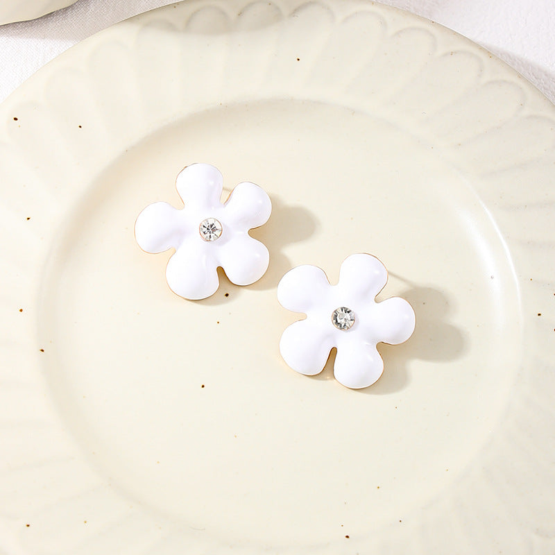 Fashion Ins Summer Fresh Metal Color Zircon-Encrusted Small Flower Women's Stud Earrings by Planderful delivers a touch of elegance and sparkle perfect for vacation and everyday wear.