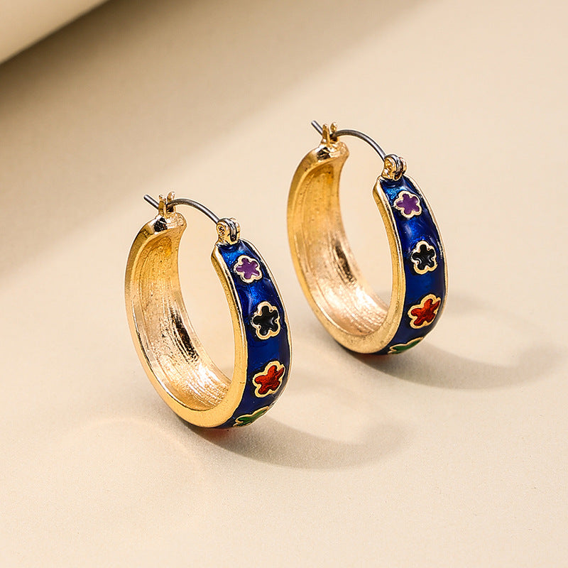 French Retro Glazed Flower Drop Earrings in Colorful Metal