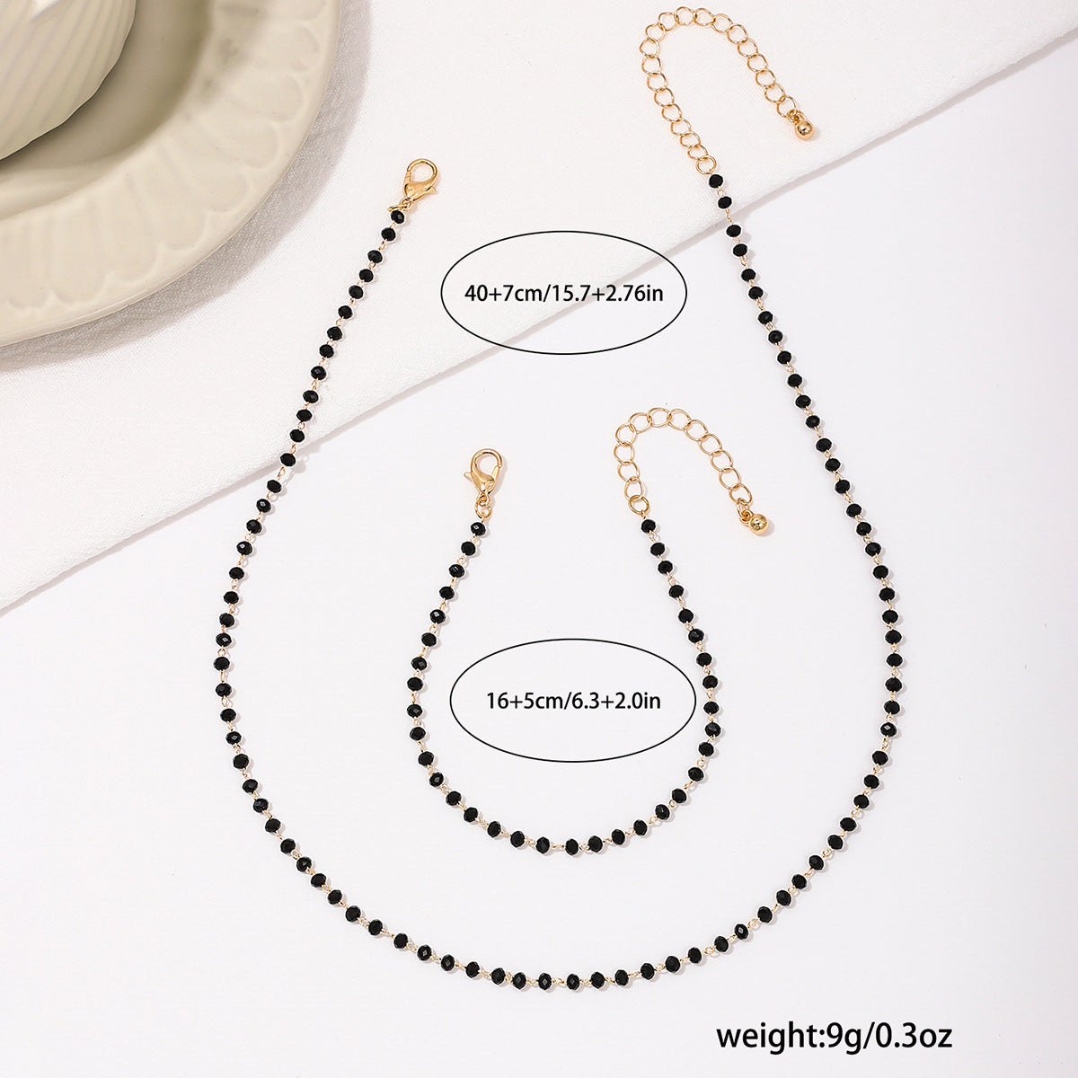 Metallic Glass Beaded Necklace and Bracelet Set - Elegant Jewelry Gift for Women