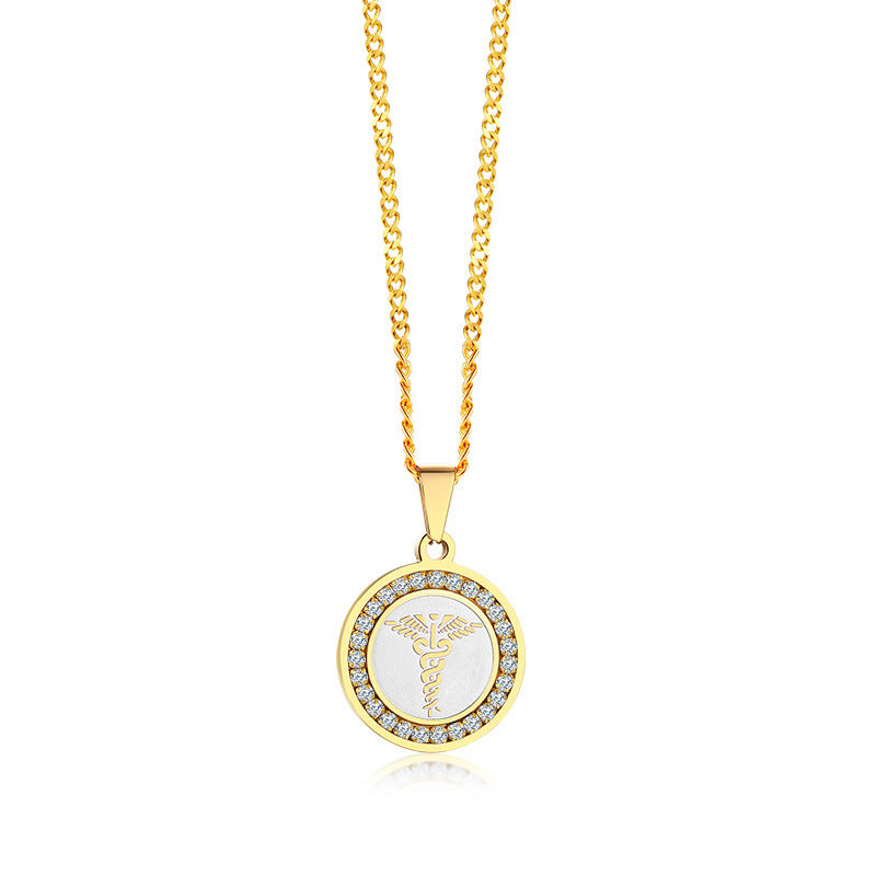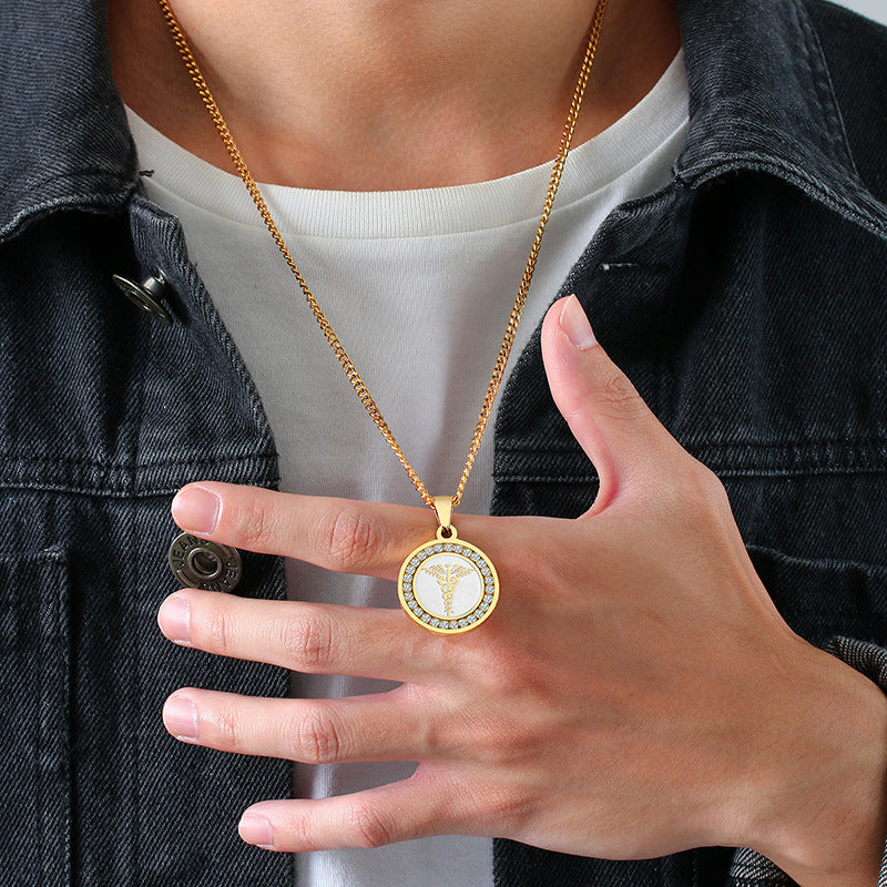 Stainless Steel Zircon Medical Logo Pendant Necklace for Men