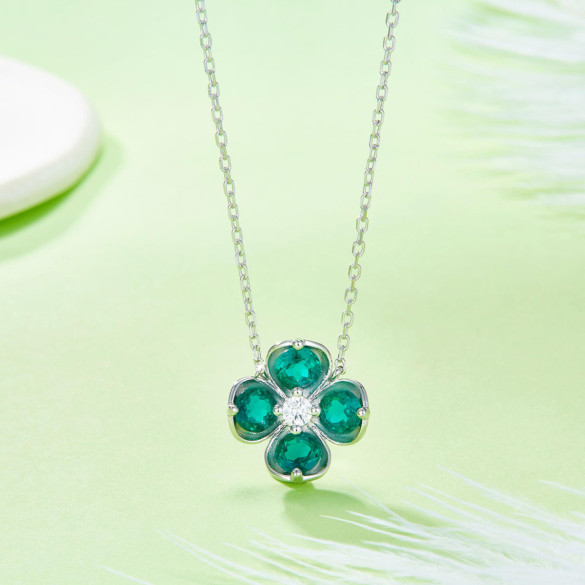 Planderful Colorful Lab Grown Gemstone Clover Pendant Necklace 40cm S925 Silver Plated Elegant For Her