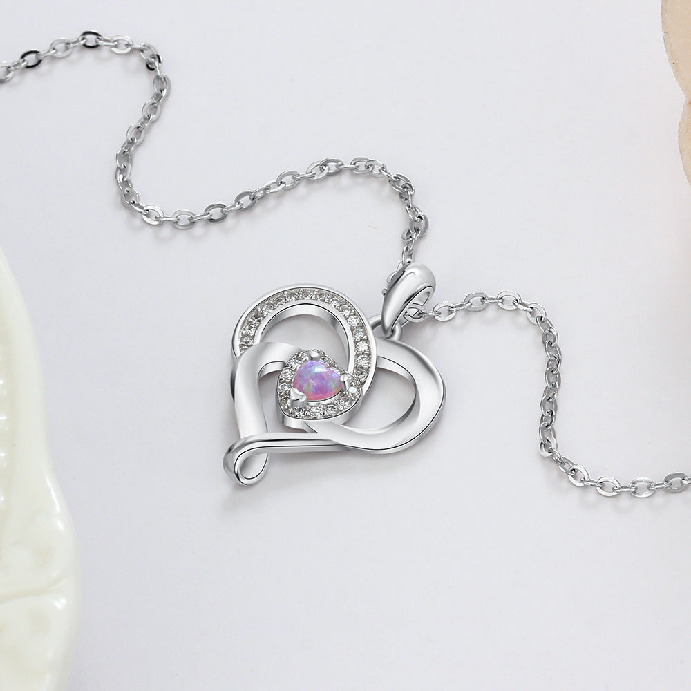 Spiral Heart Pendant with Pink Heart Shape Opal Zircon Sterling Silver Necklace
