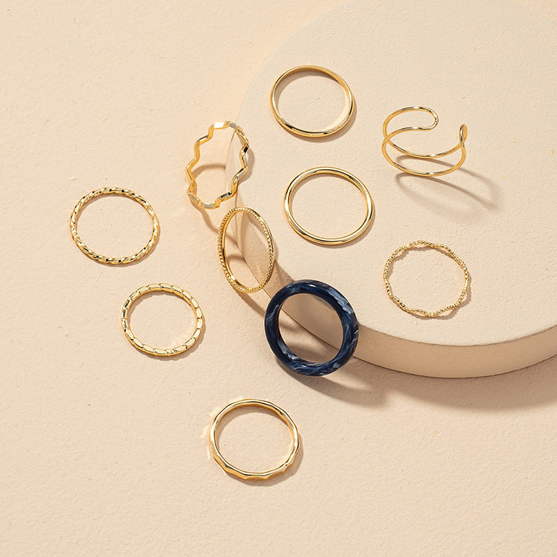 • Set includes 10 exquisite rings crafted from a fusion of high-quality metal and resin.