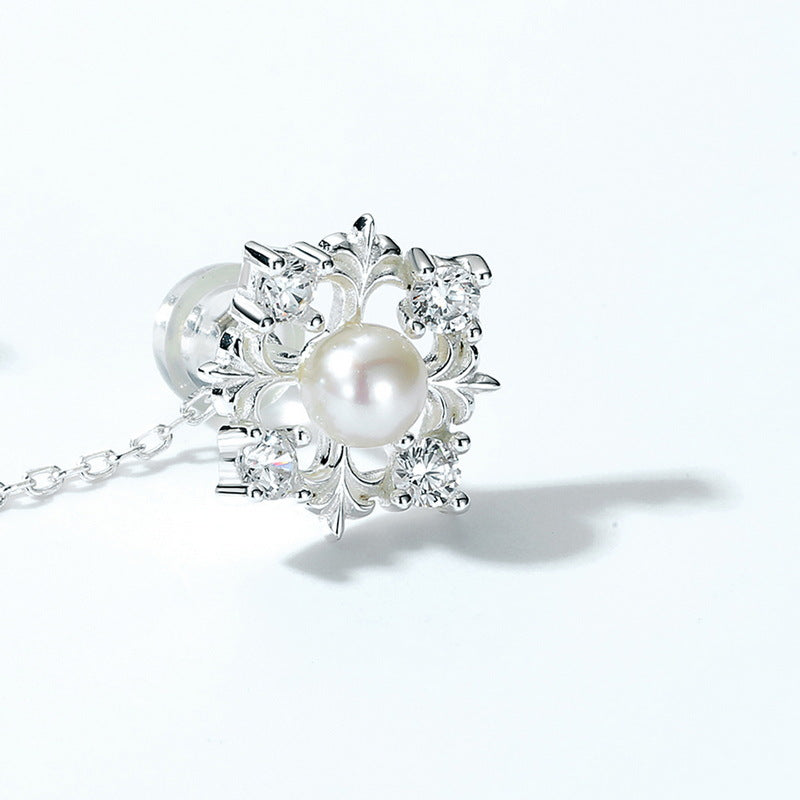 Gift yourself a little luxury this season with these exquisite Christmas Pearl Zircon Snowflake Tassel Sterling Silver Drop Earrings. Featuring an eye-catching pearl snowflake design studded with sparkling zircons, these earrings are finished with a tassel pendant and an elegant pearl pendant, it's perfect for making a statement with your holiday outfits.